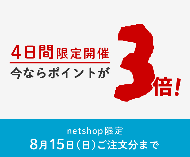 本日より4日間netshop限定でポイント3倍キャンペーンを実施いたします。