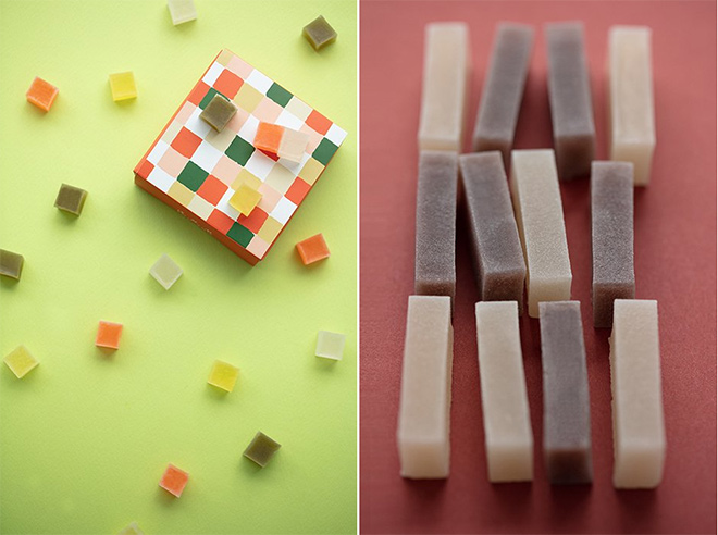 京都の老舗和菓子屋『伊藤軒』のお菓子と、SOU・SOUのデザインのコラボレーションで生まれた、お菓子。