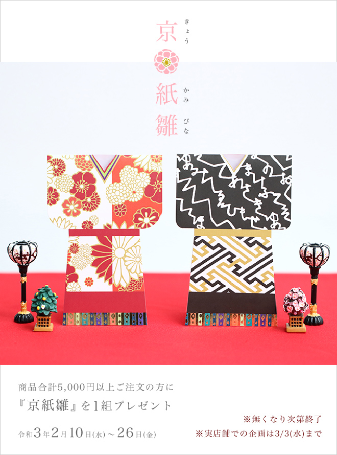 今年もSOU・SOUでは、京雛・京人形の老舗『 安藤人形店 』とコラボレートした京紙雛をプレゼントいたします。