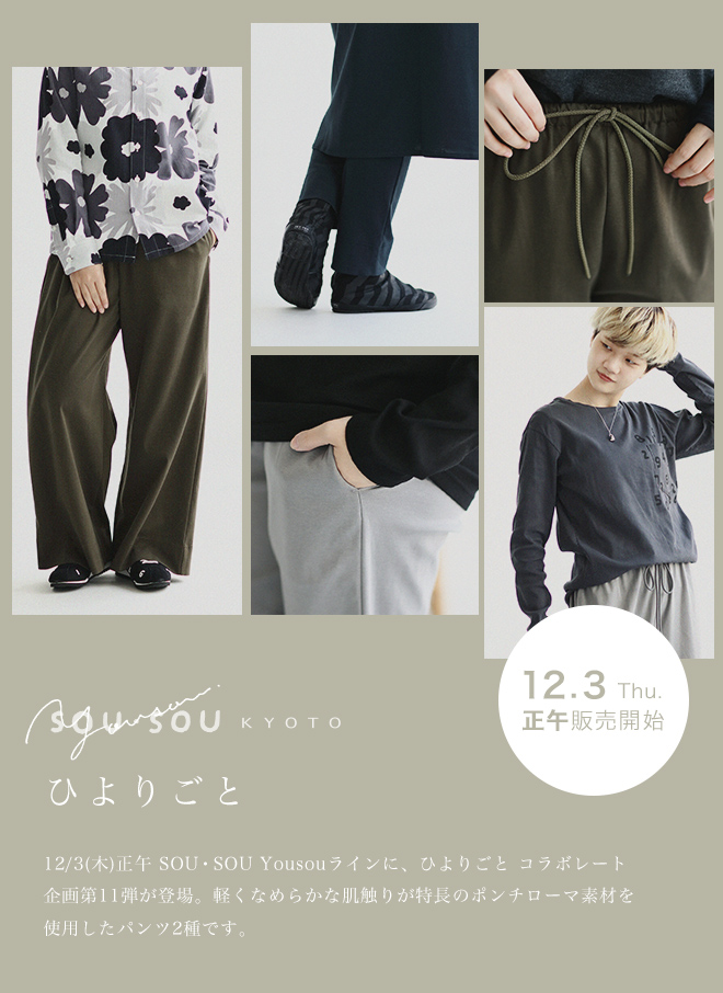12/3(木)12時 SOU・SOU Yousouラインに、ひよりごと コラボレート企画第11弾が登場。