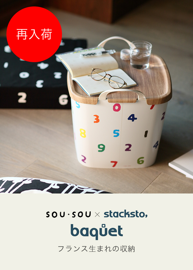 SOU・SOU×stacksto,(スタックストー)のコラボ商品『baquet(バケット)』が一部再入荷しました。是非ご覧くださいませ。
