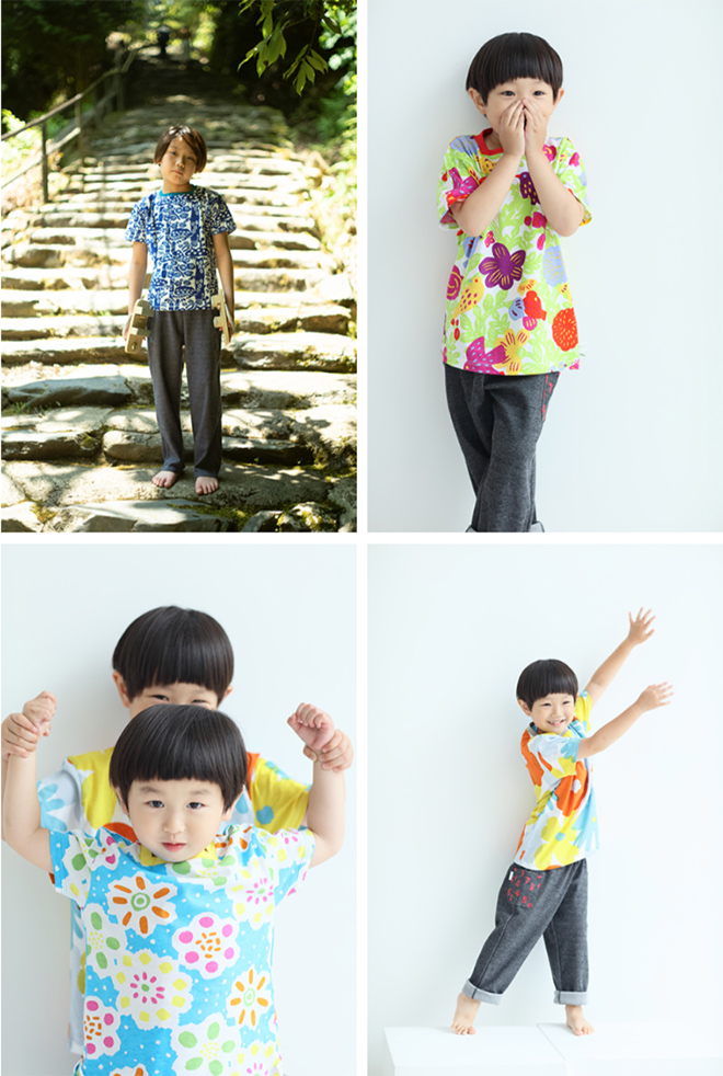 薄手の高島縮を使用した夏にぴったりのトップス2種&パンツ2種です。