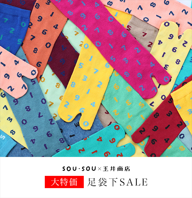 足袋やくつした一筋にものづくりを続けてこられた『 玉井商店 』が、デッドストックの糸でSO-SU-U柄足袋下を製作。数量限定・特別価格でご提供いたします。