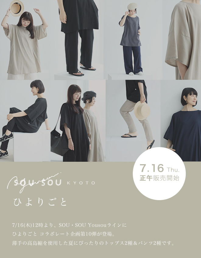 7/16(木)12時 SOU・SOU Yousouラインに、ひよりごと コラボレート企画第10弾が登場。