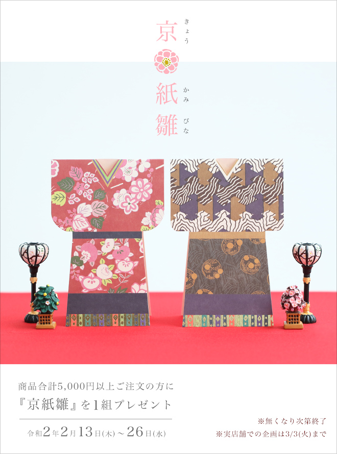 今年もSOU・SOUでは、京雛・京人形の老舗『 安藤人形店 』とコラボレートした京紙雛をプレゼントいたします。