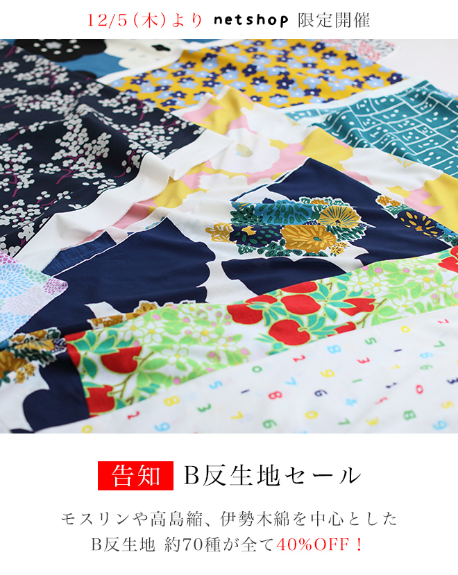 『 40%OFF B反生地セール 』を12/5(木) 午前10時より開催いたします。