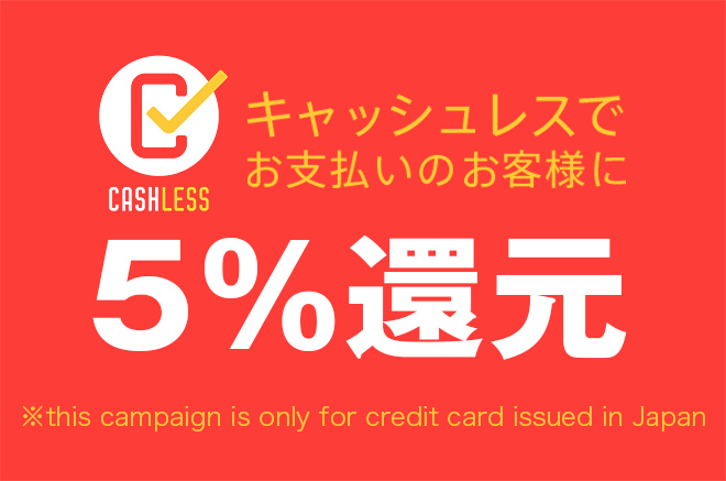 一部キャッシュレス決済で5%還元適応しております。
