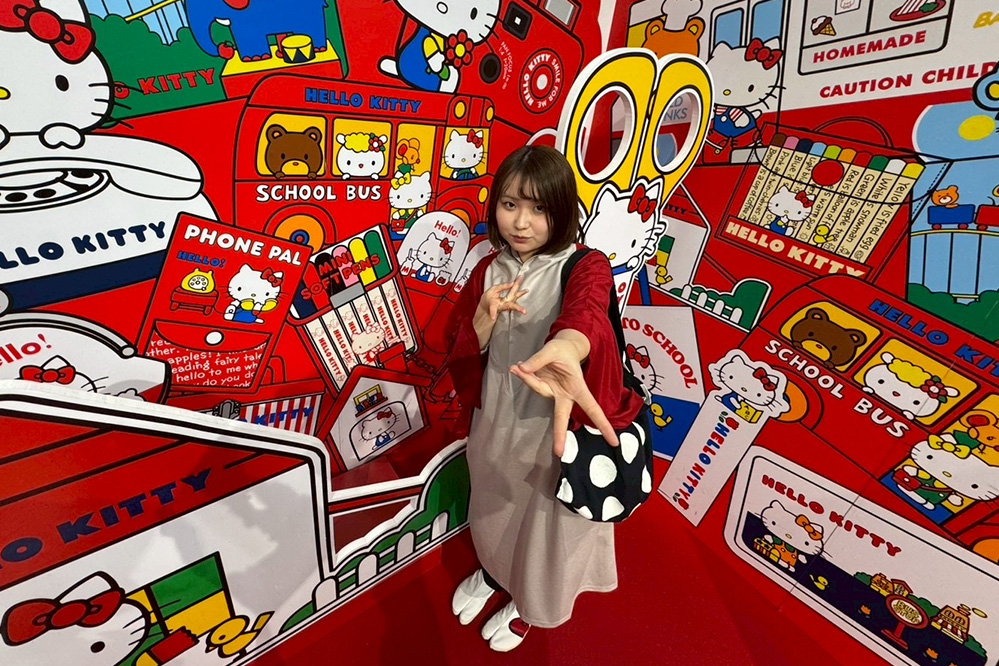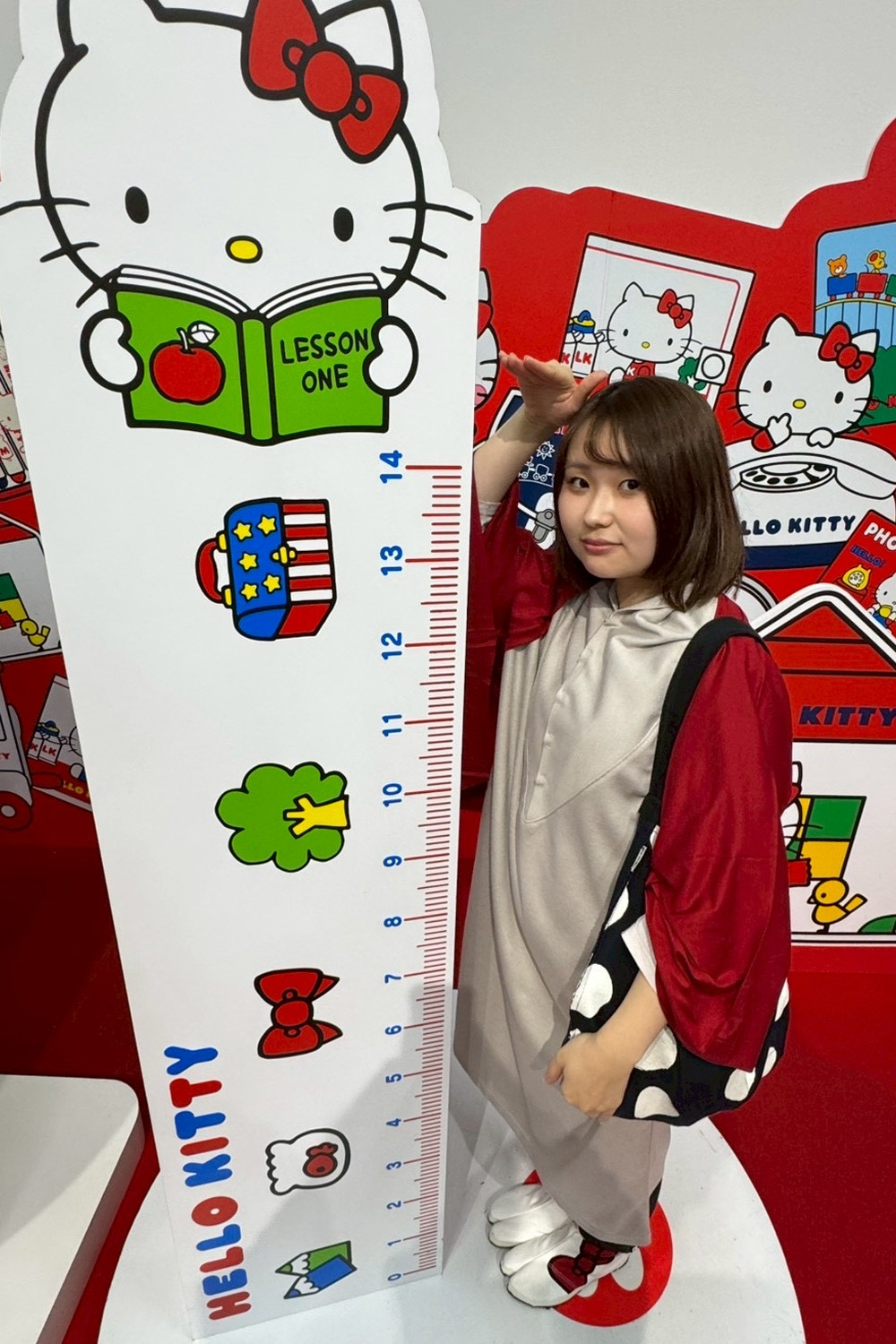 せっかくなら、自分も世界観の一部になりたいと思い、この日は“キティちゃんコーデ”でお出かけ。