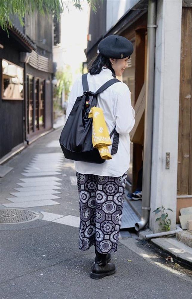 テキスタイルを手にさげて秋のお出かけ、いかがでしょうか。男女問わずおすすめです!