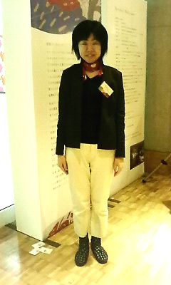 この画像は女子美用にデザインされた手ぬぐいです。大阪の(株)ナカニさんにお願いして注染という技法で作りました。この手ぬぐいを使ってくびまき、小巾折等も作りました。展覧会場にて好評発売中です。