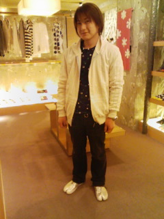 普段はパーカーをあまりお召しにならないそうですが、足元の半革スポーツ足袋 銀と狂言のパーカーがとってもお似合いです。