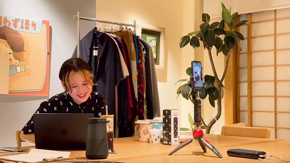 ライブ配信では、生地やデザイン、色と柄について紹介するだけでなく、日本の文化についても少しお話ししています。
