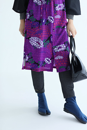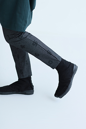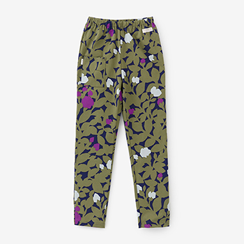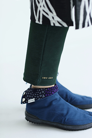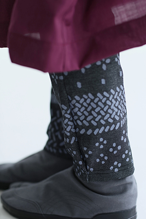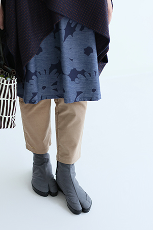 伸縮性のある細身のえんゆう穿き。股上の深いデザイン&ウエストはゴム仕様で楽な着心地です。