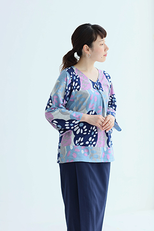 薙刀袖と襟ぐり部分の襞が特徴のジバン。一枚での着用はもちろん、インナーとしてもおすすめです。