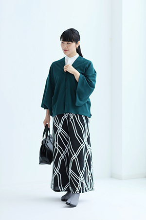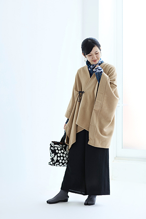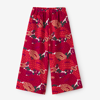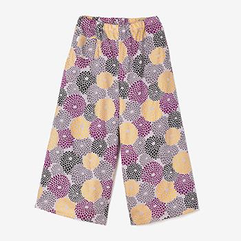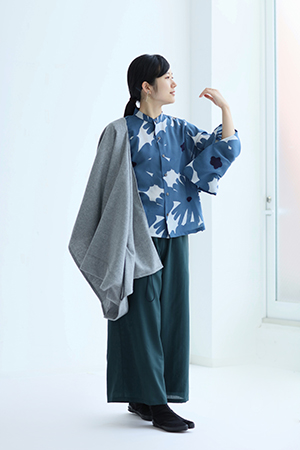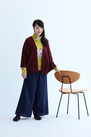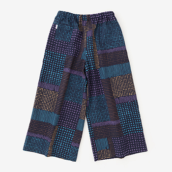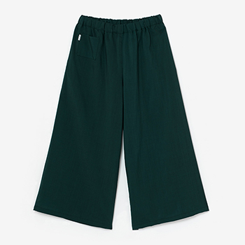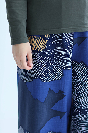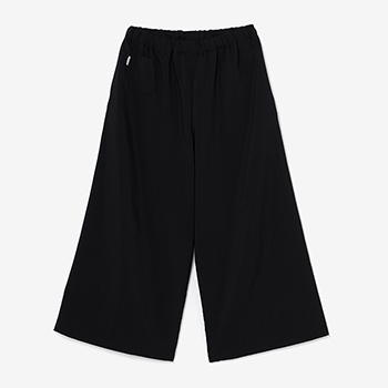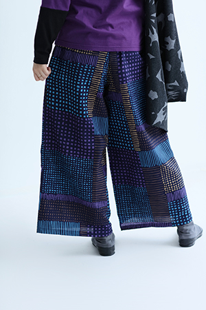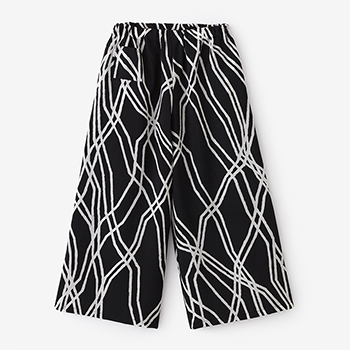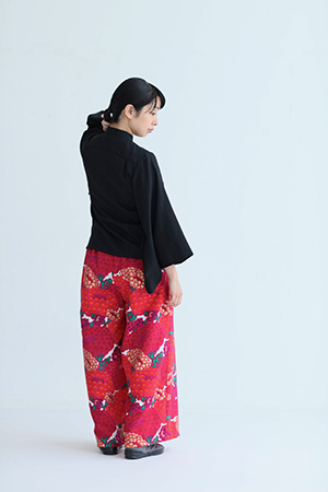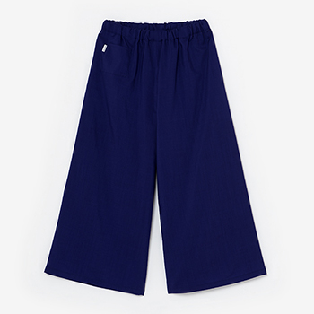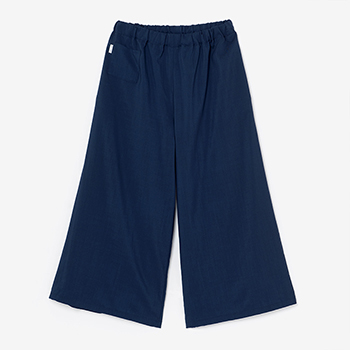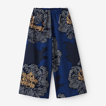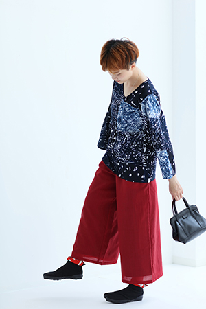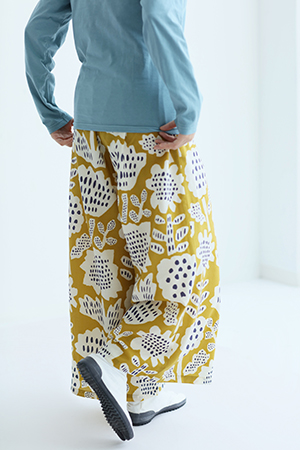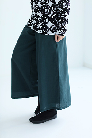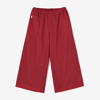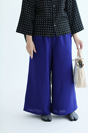 サラリとした肌ざわり、ドレープ感が特長のモスリン生地のパンツ。ウエストはゴム&紐仕様。