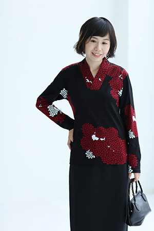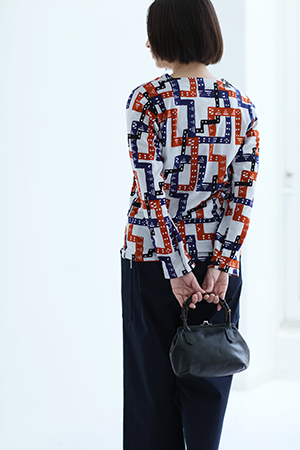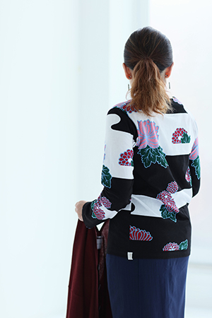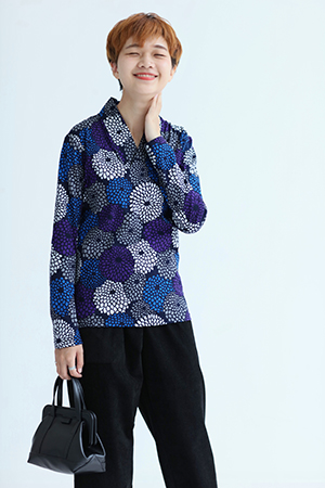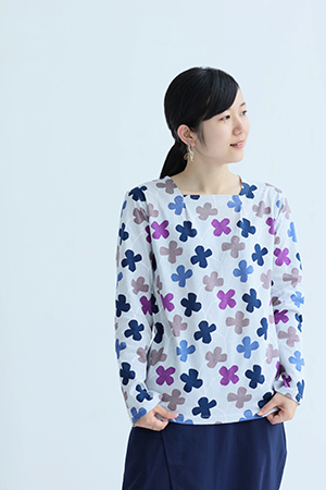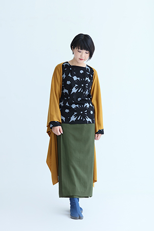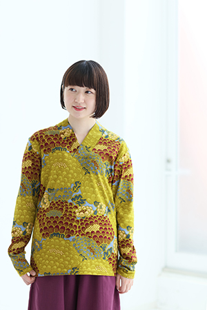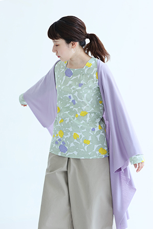 着心地の良い綿天竺に、京型友禅で染色を施しました。すっきりとした細身のシルエットです。