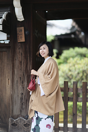 ウール素材を使用した外套。羽織るだけでぐっと和のよそおいに。着物の上からも着ていただけます。