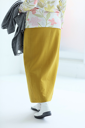 静岡県浜松市で織られたモスリン生地のスカート。すっきりとした細身のシルエットです。