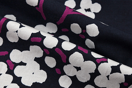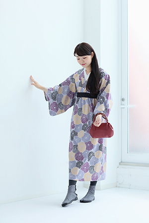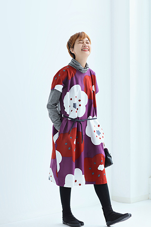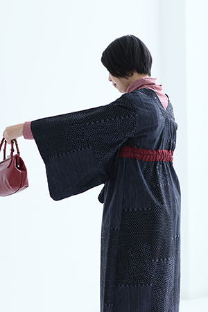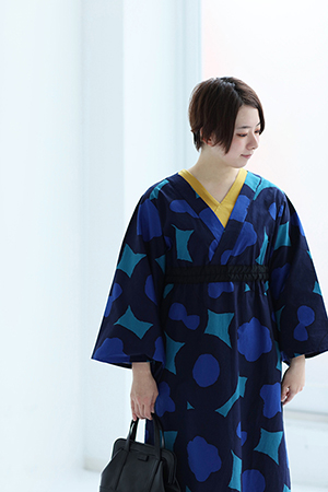 SOU・SOU着衣定番のワンピース三種。ストレッチ性のある綿麻混生地に京型友禅で染色。