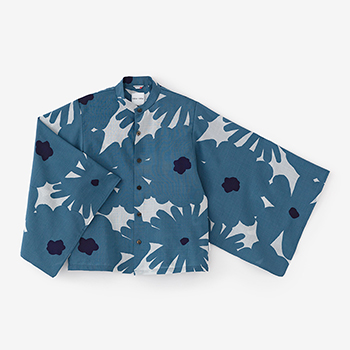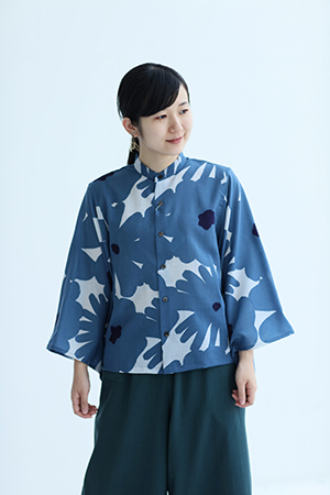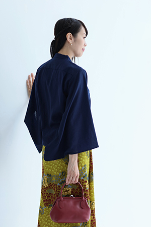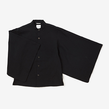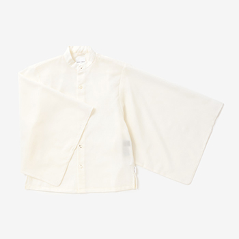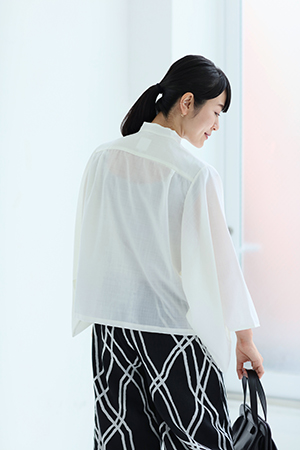 小袖がポイントのモスリンシャツ。天然素材が持つ通気性とサラリとした肌ざわり、ドレープ感が特長。
