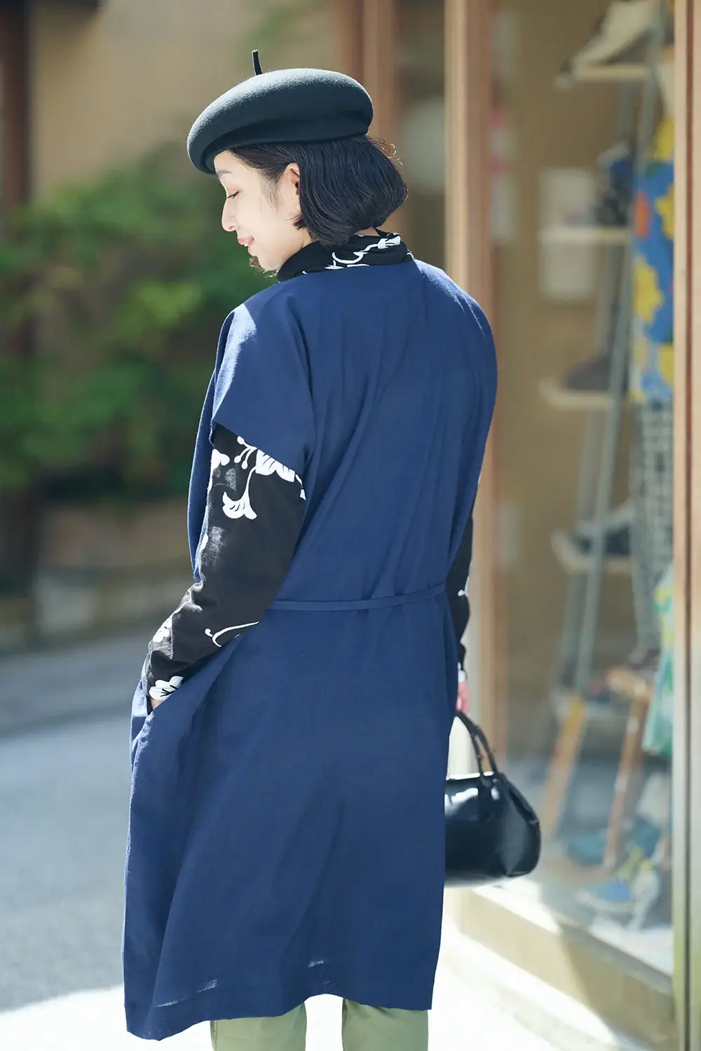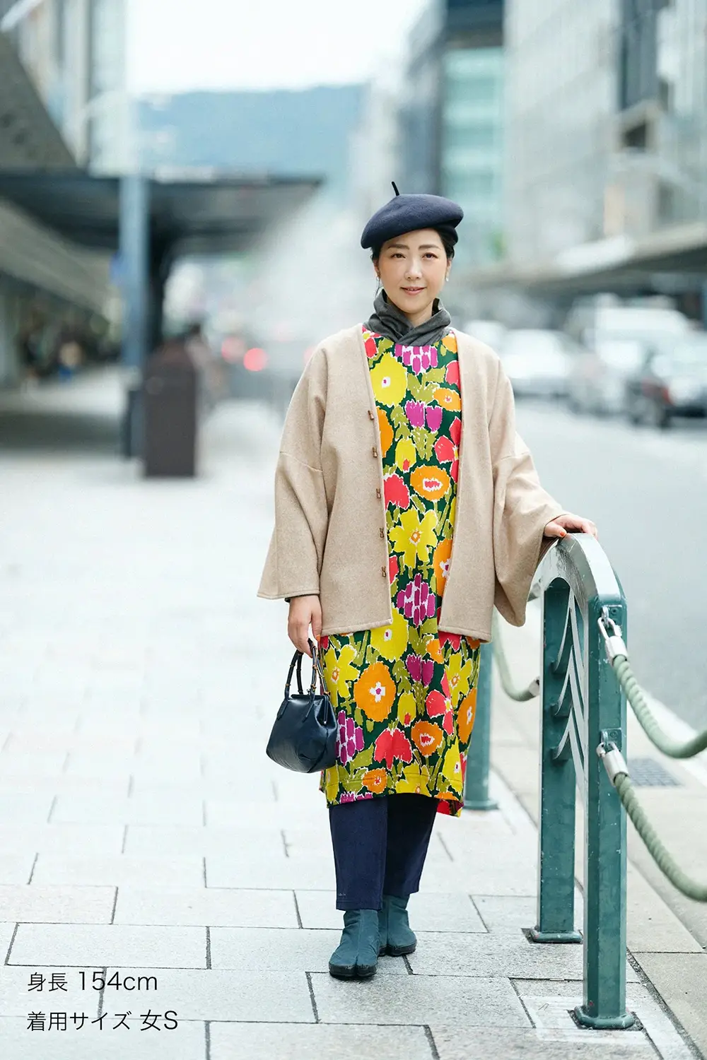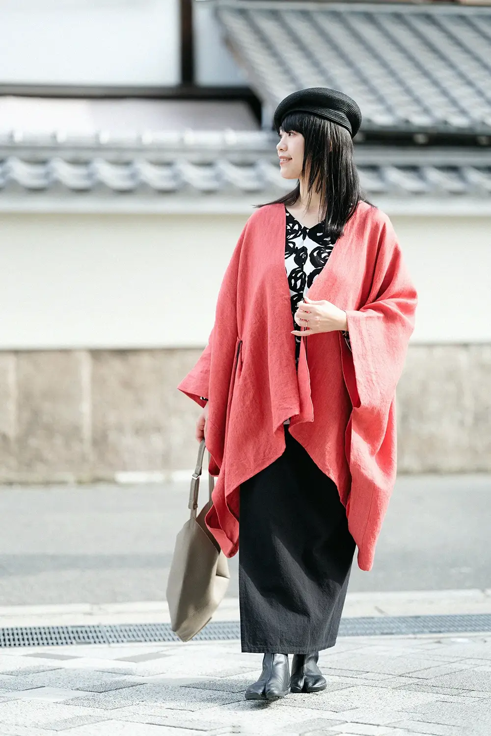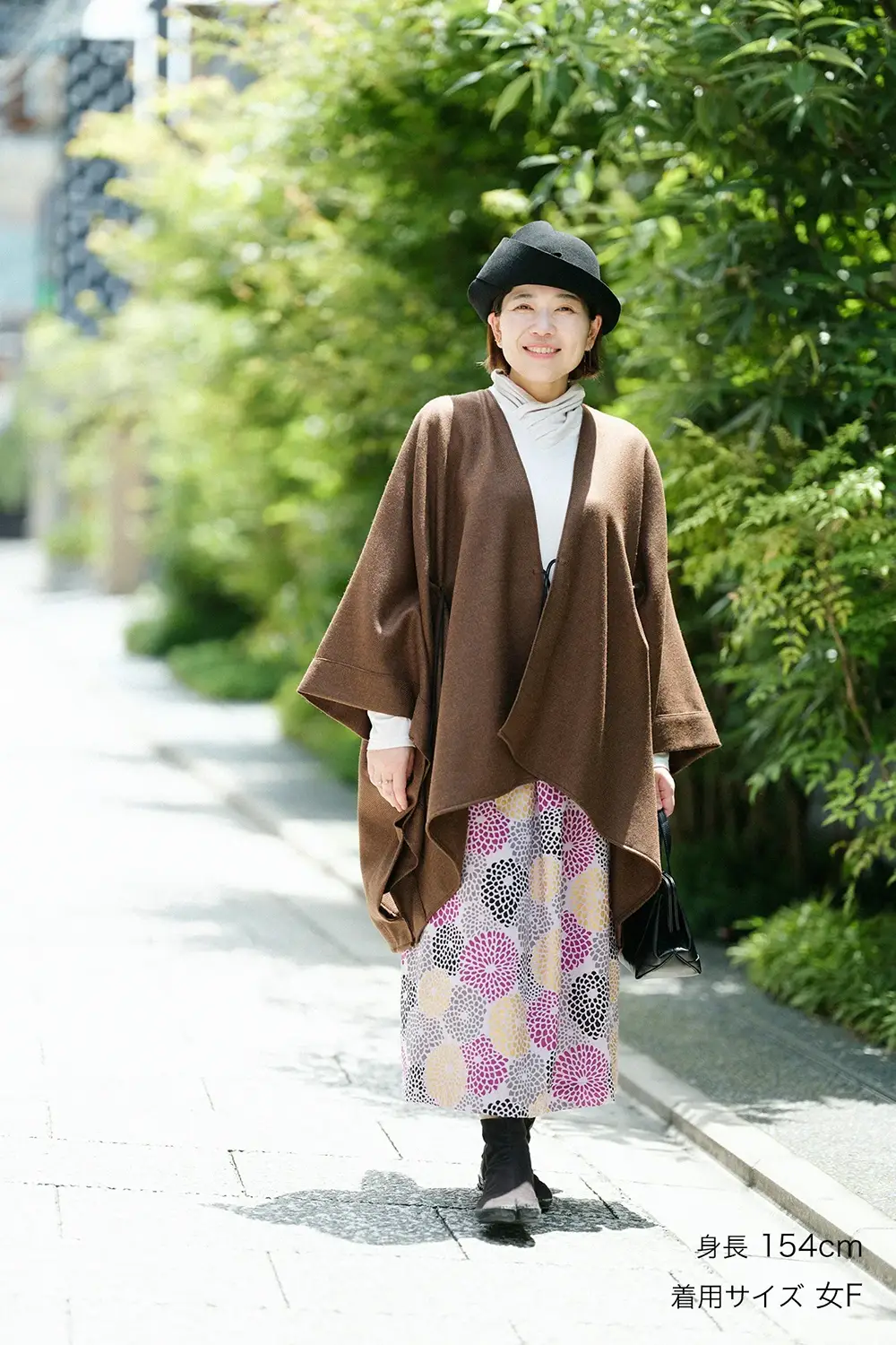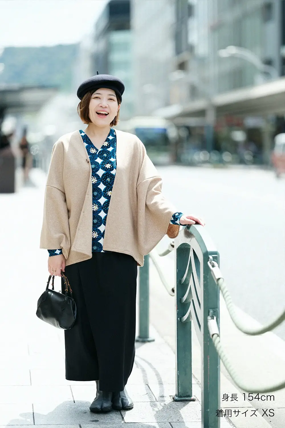 装いをサラリとまとめる、仕上げの一枚。ゆったり身体をつつみます。