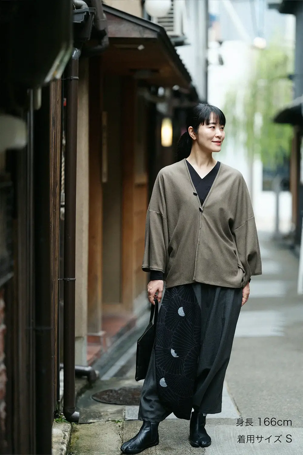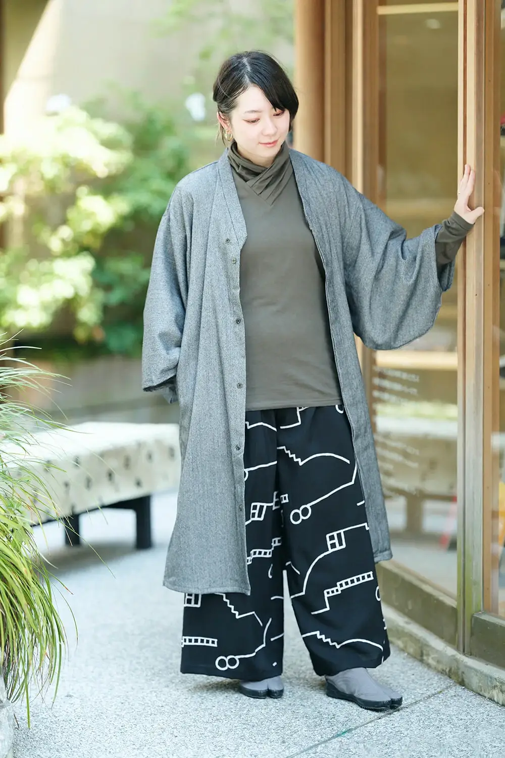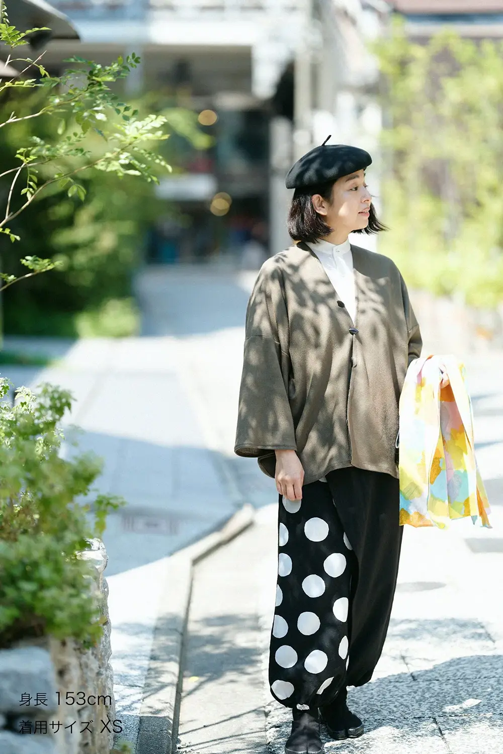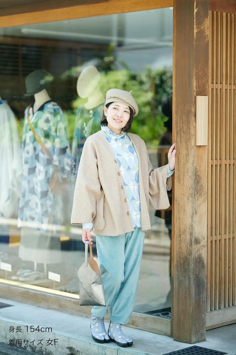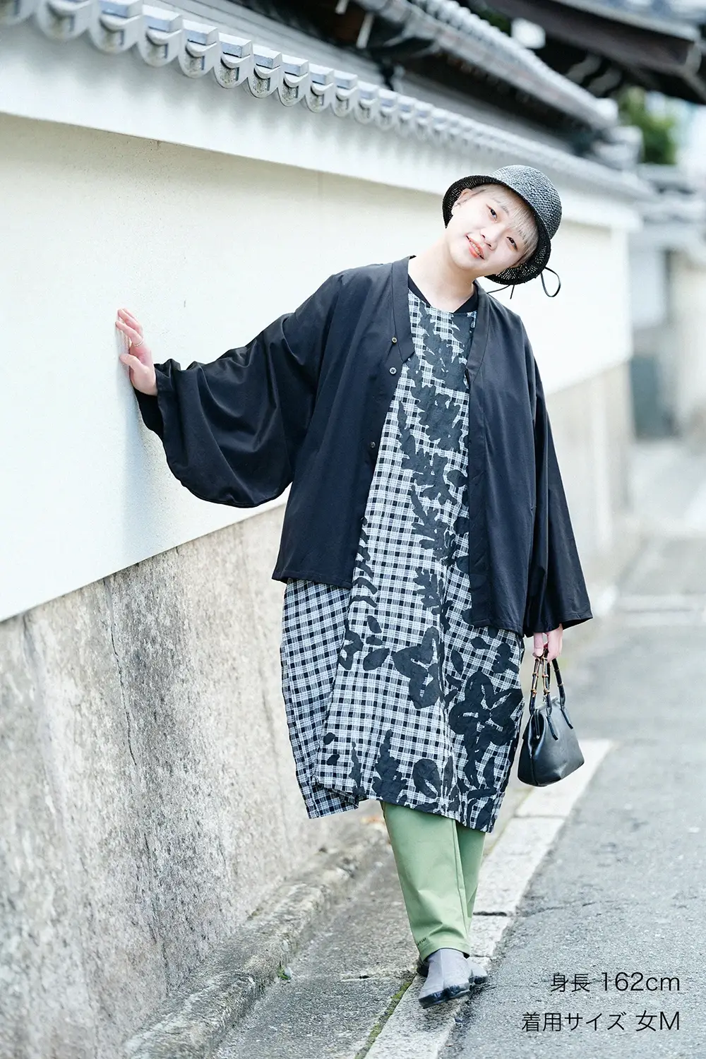 装いをサラリとまとめる、仕上げの一枚。ゆったり身体をつつみます。