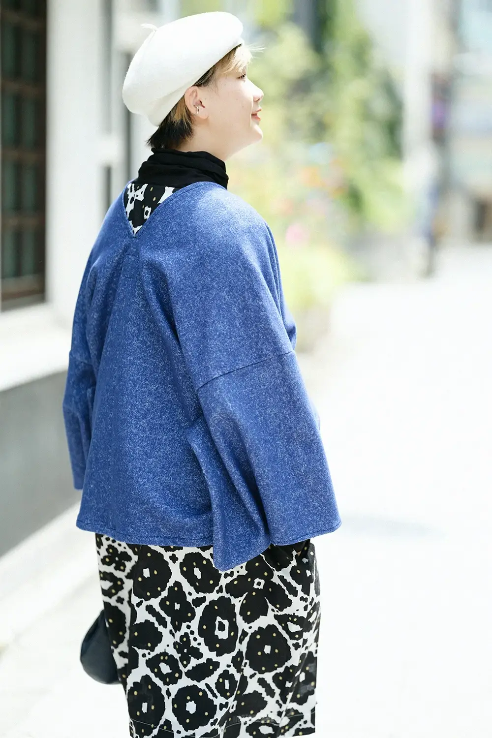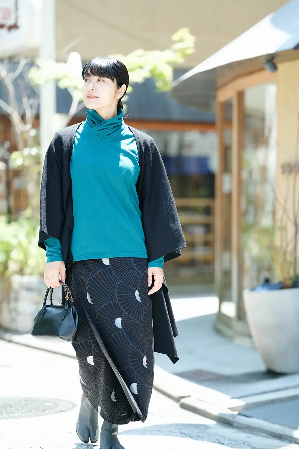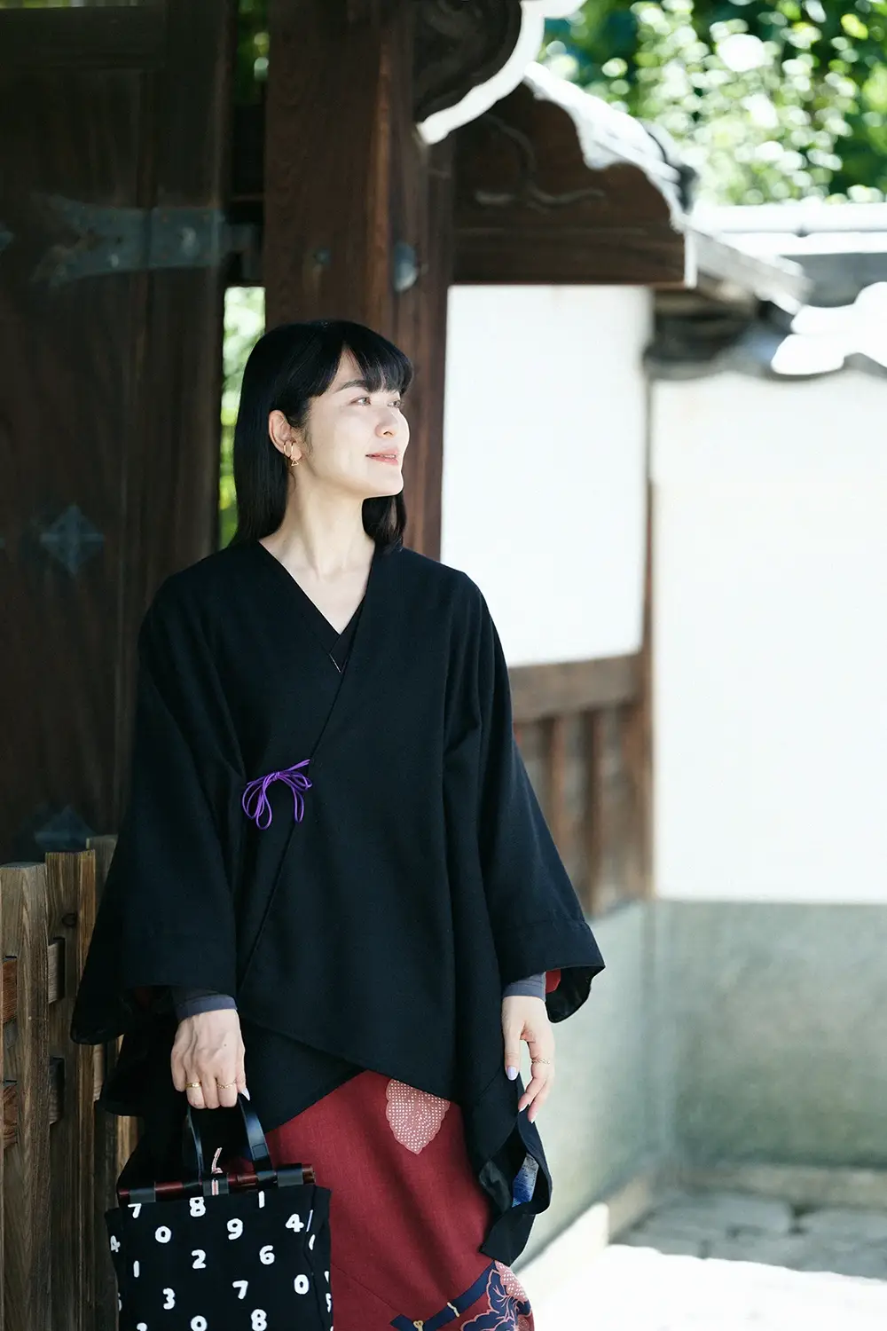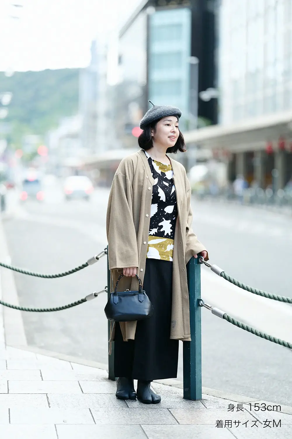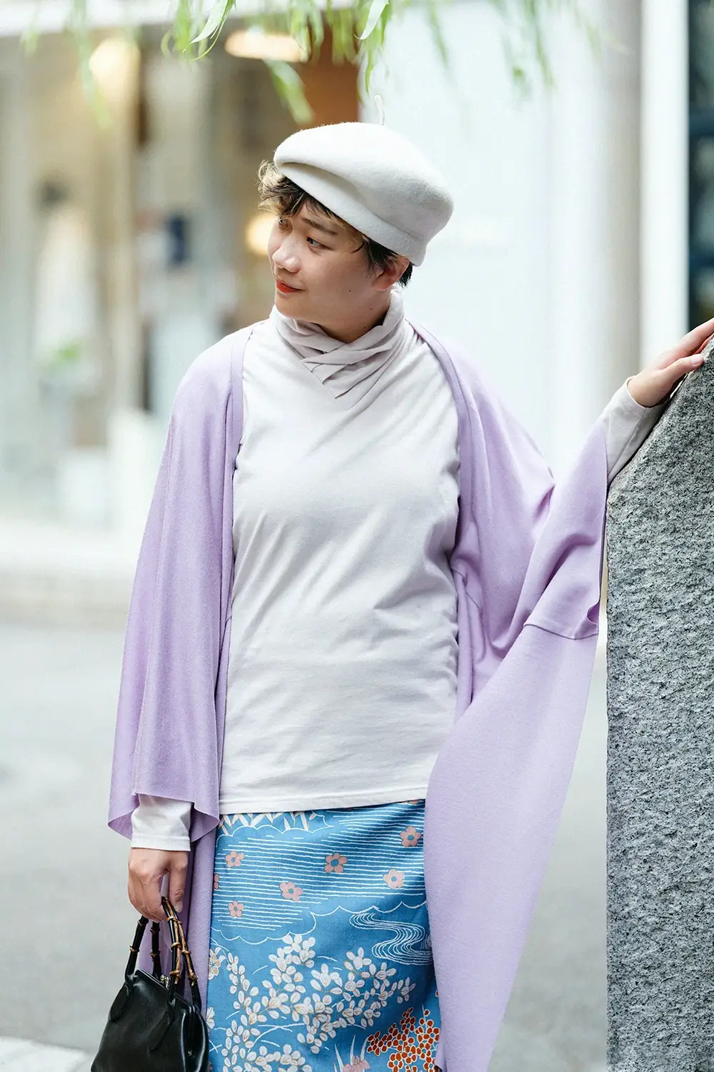 装いをサラリとまとめる、仕上げの一枚。ゆったり身体をつつみます。