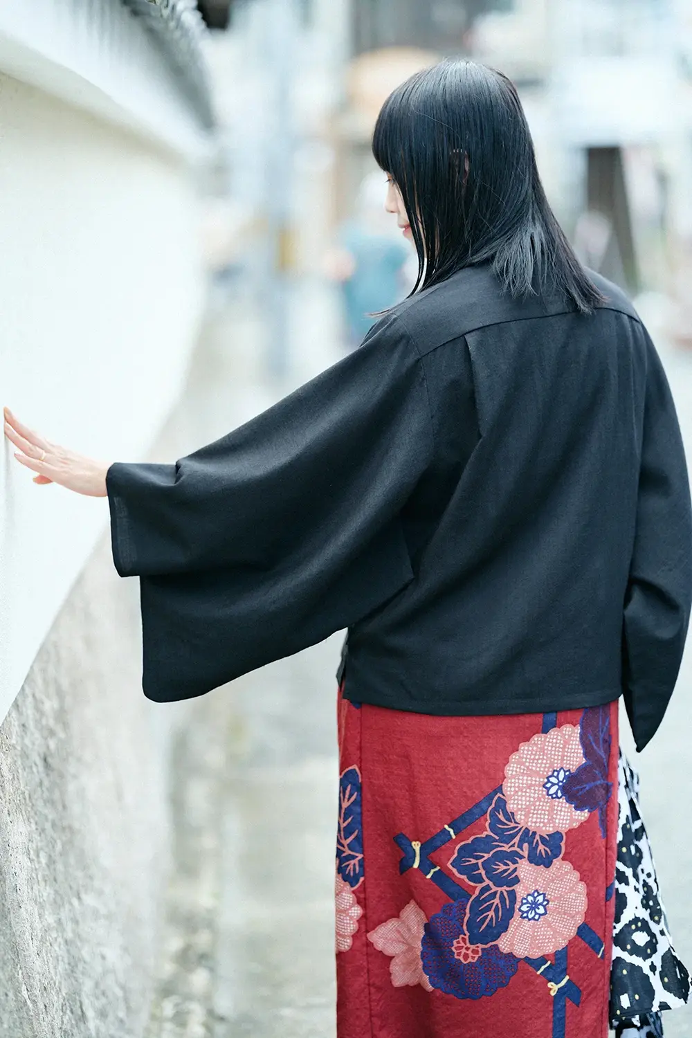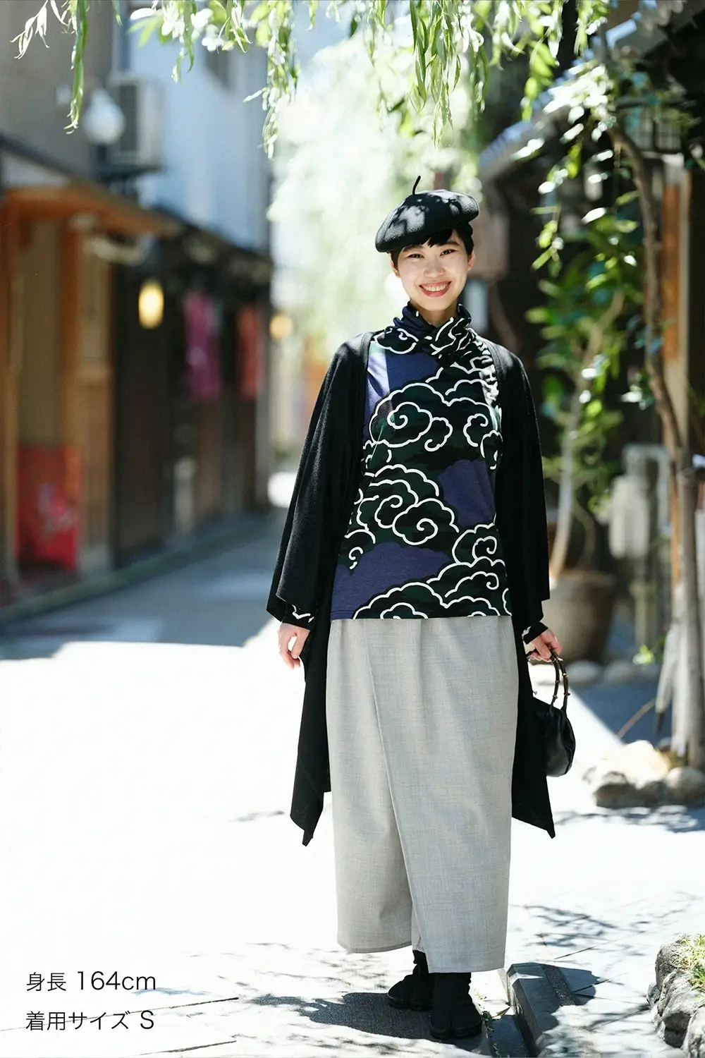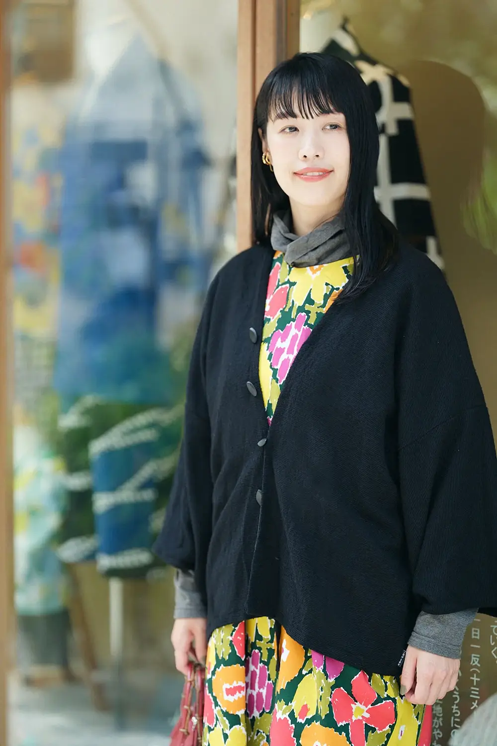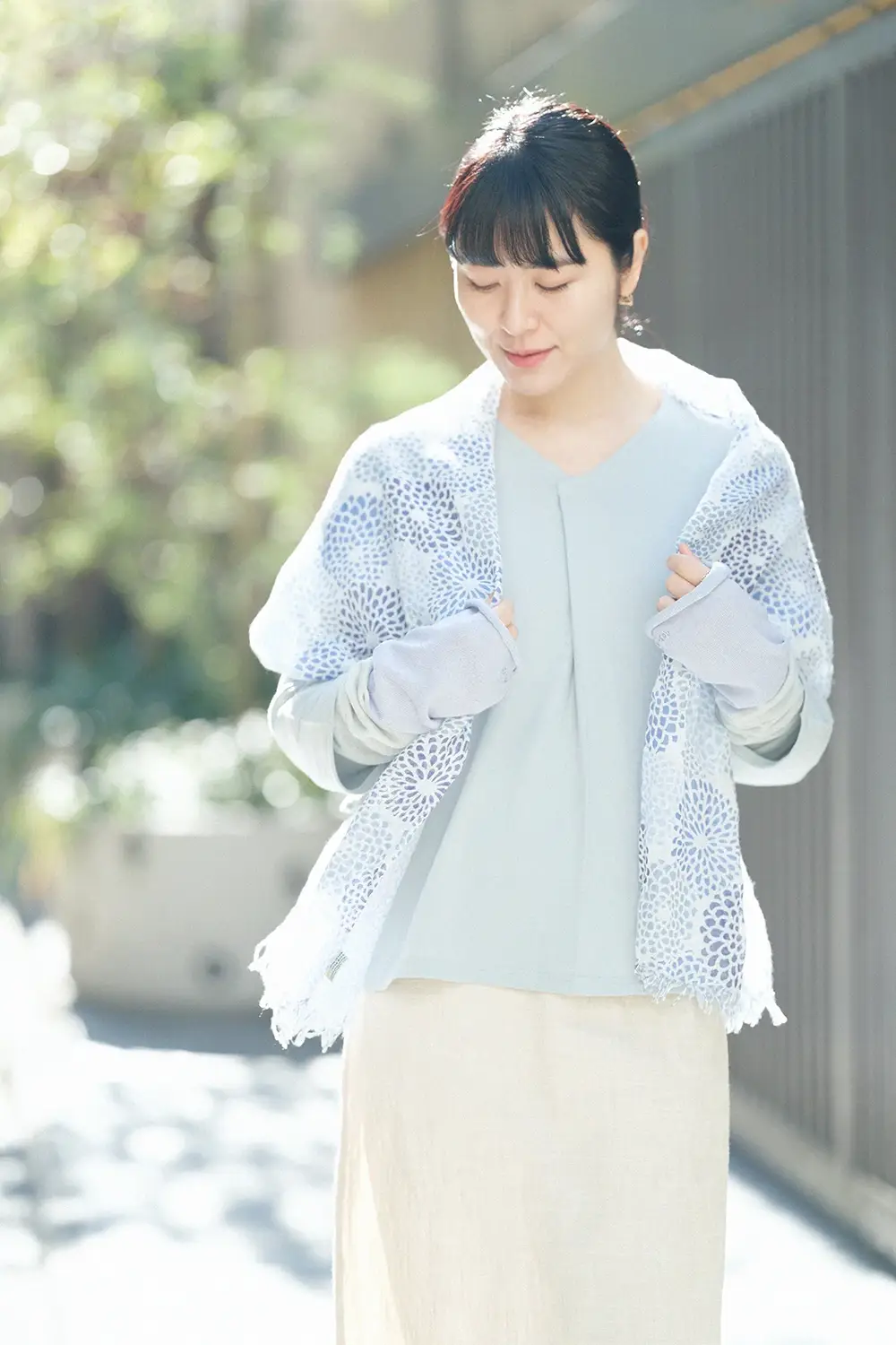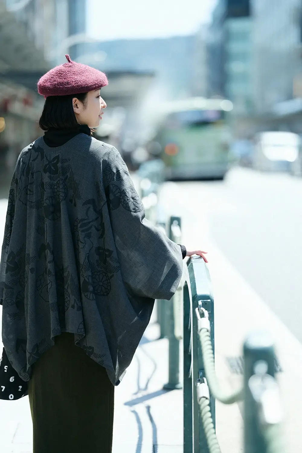 装いをサラリとまとめる、仕上げの一枚。ゆったり身体をつつみます。