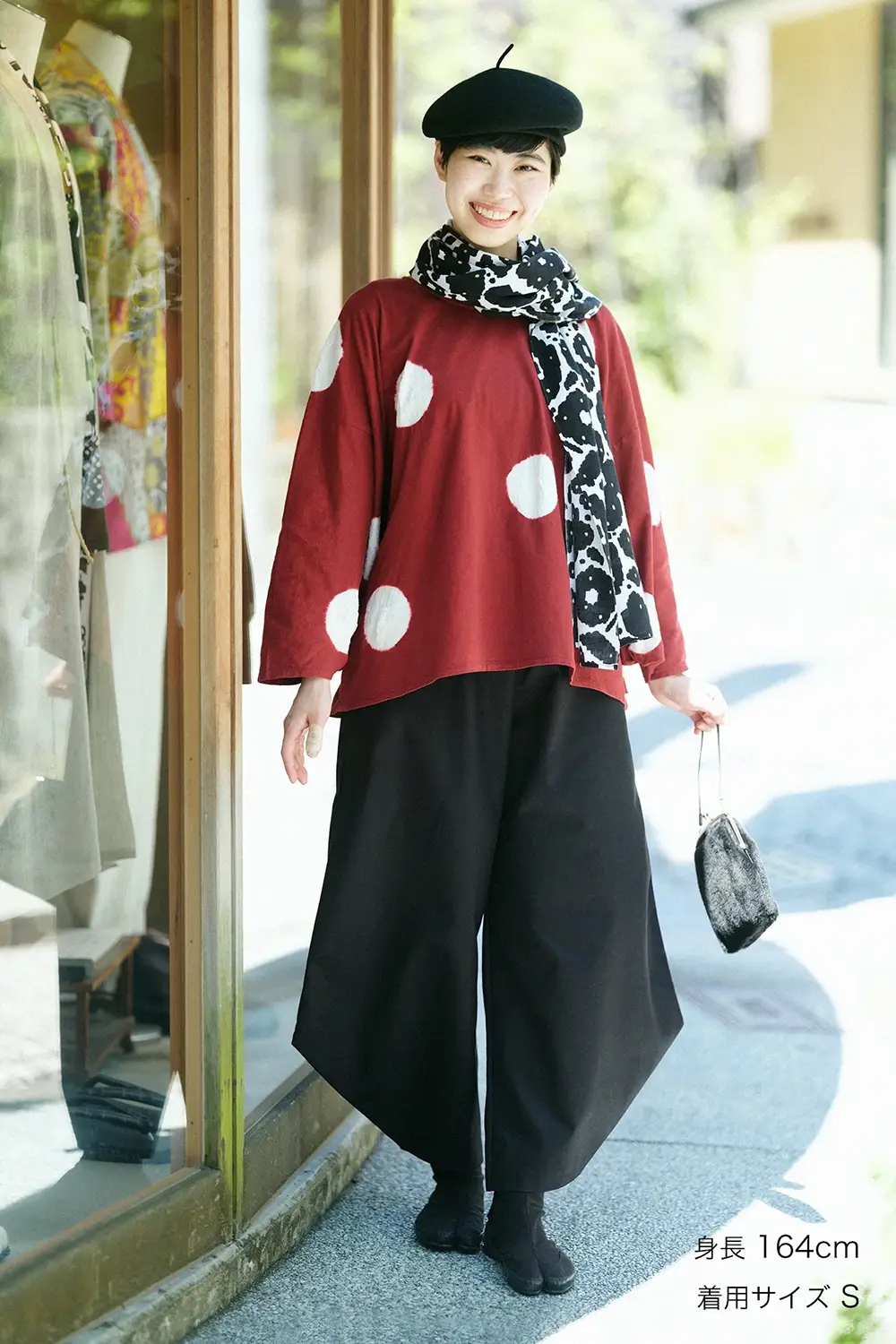 着心地のいい良質素材の秋トップス。味わいがある「絞り染め」もラインナップ。