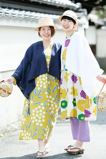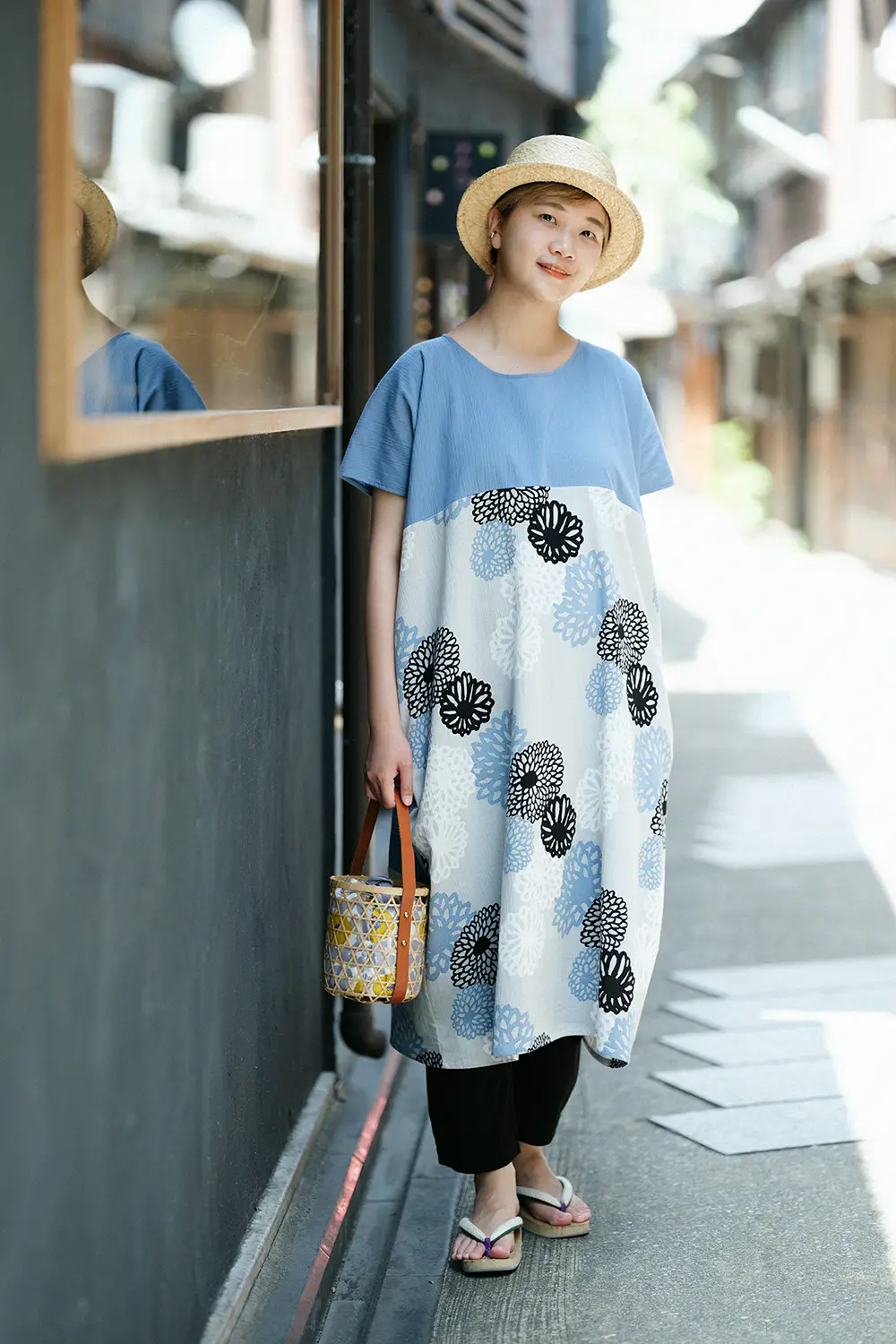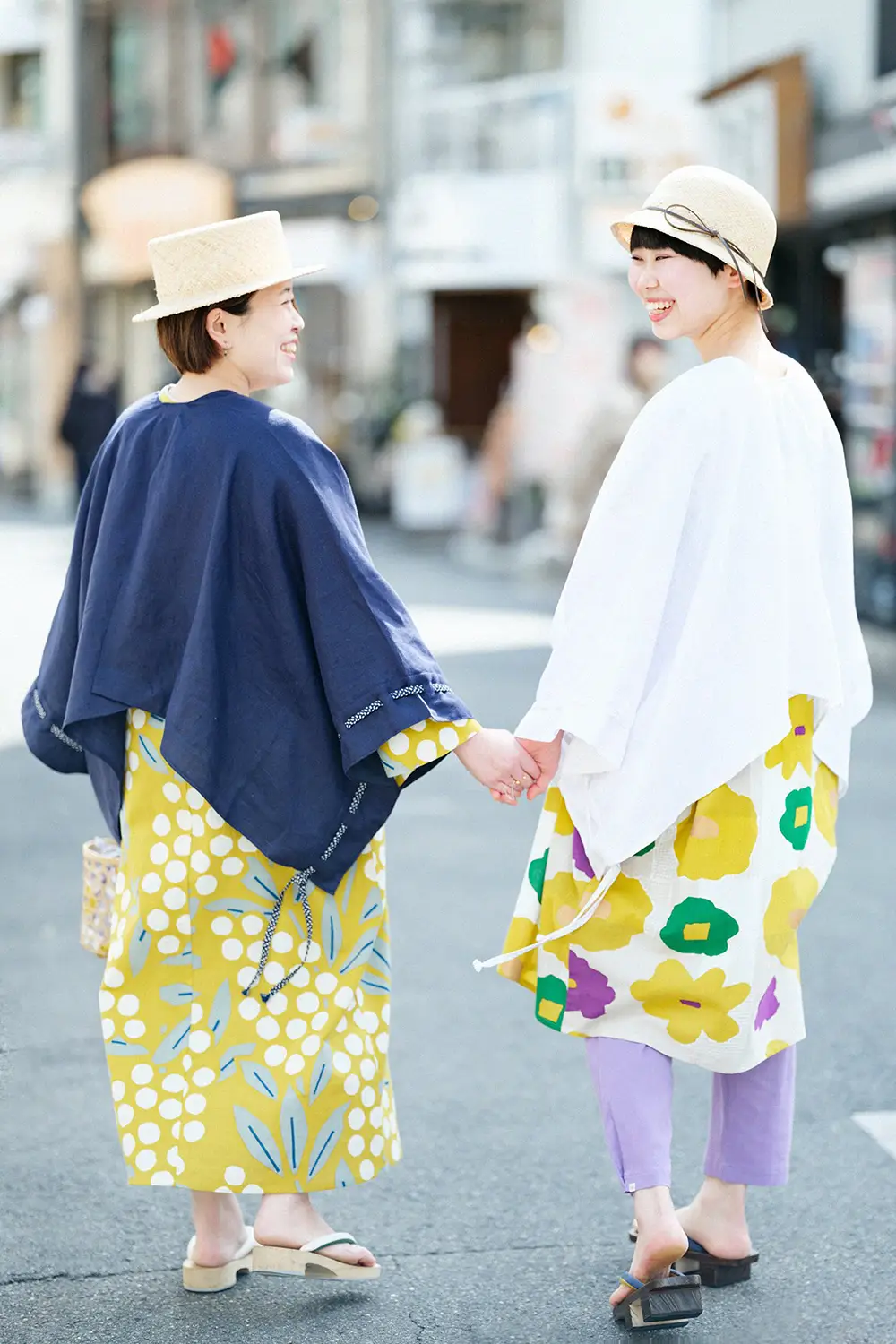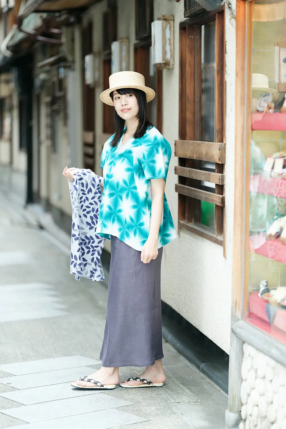 老舗が立ち並ぶ京の街をSOU・SOUの和装で巡ってみる。涼しげな素材や彩りの夏衣。着物をきているような姿、新しい京都スタイルで。おみやげ探しも、きっと特別な時間に。