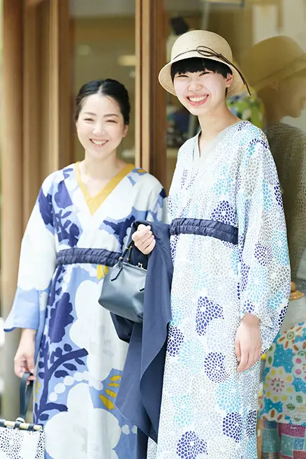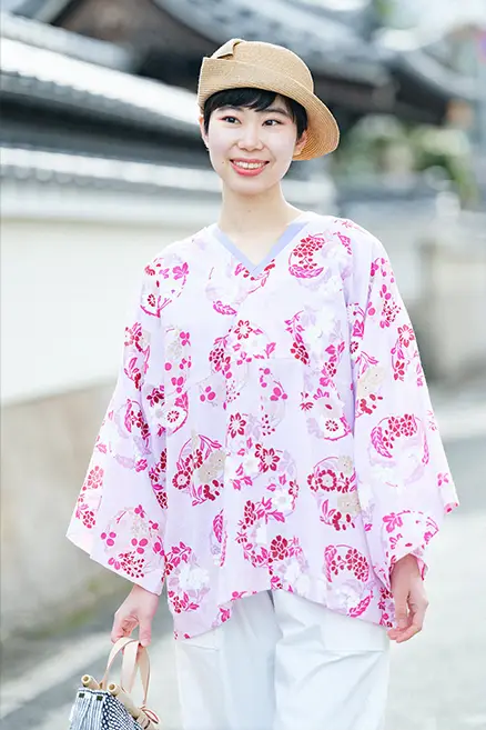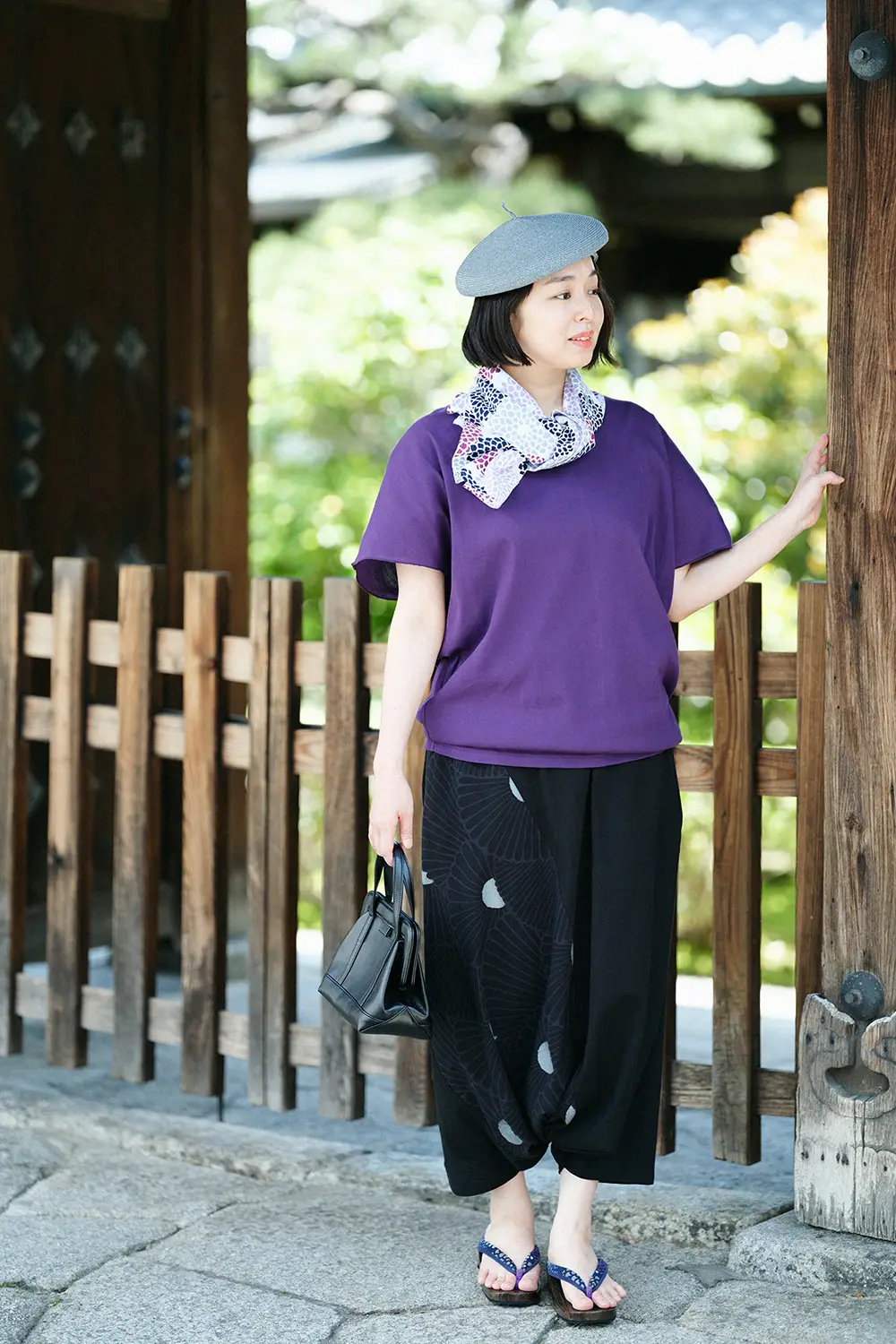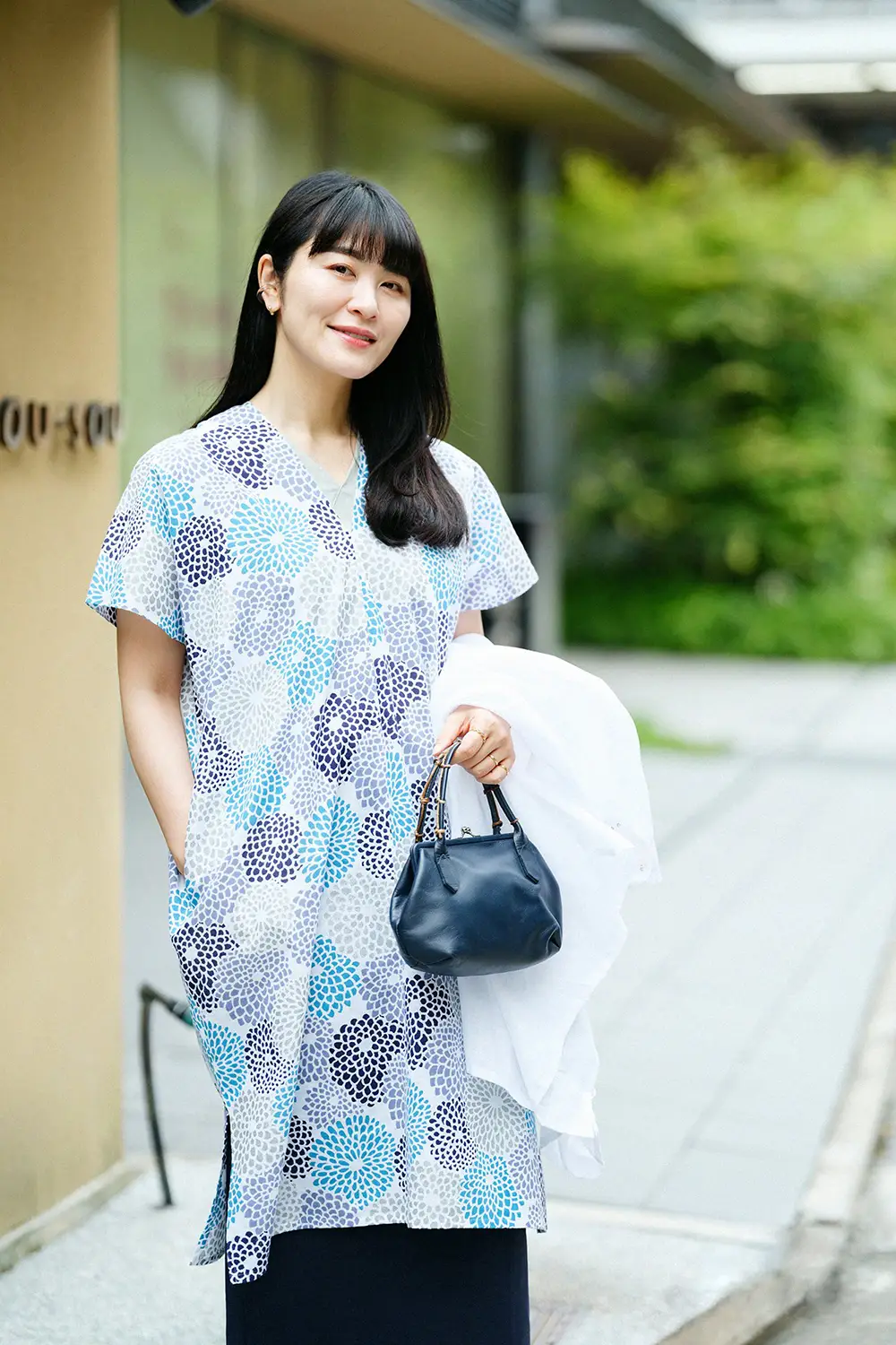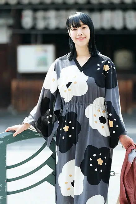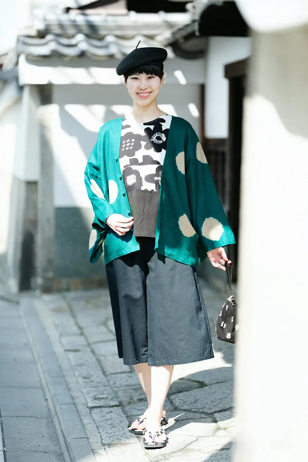 老舗が立ち並ぶ京の街をSOU・SOUの和装で巡ってみる。涼しげな素材や彩りの夏衣。着物をきているような姿、新しい京都スタイルで。おみやげ探しも、きっと特別な時間に。