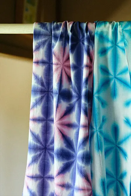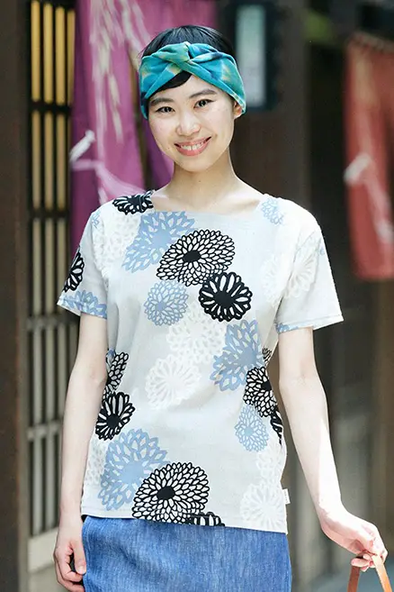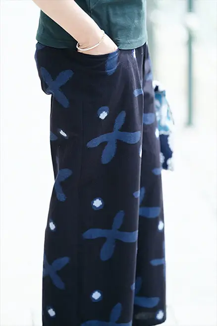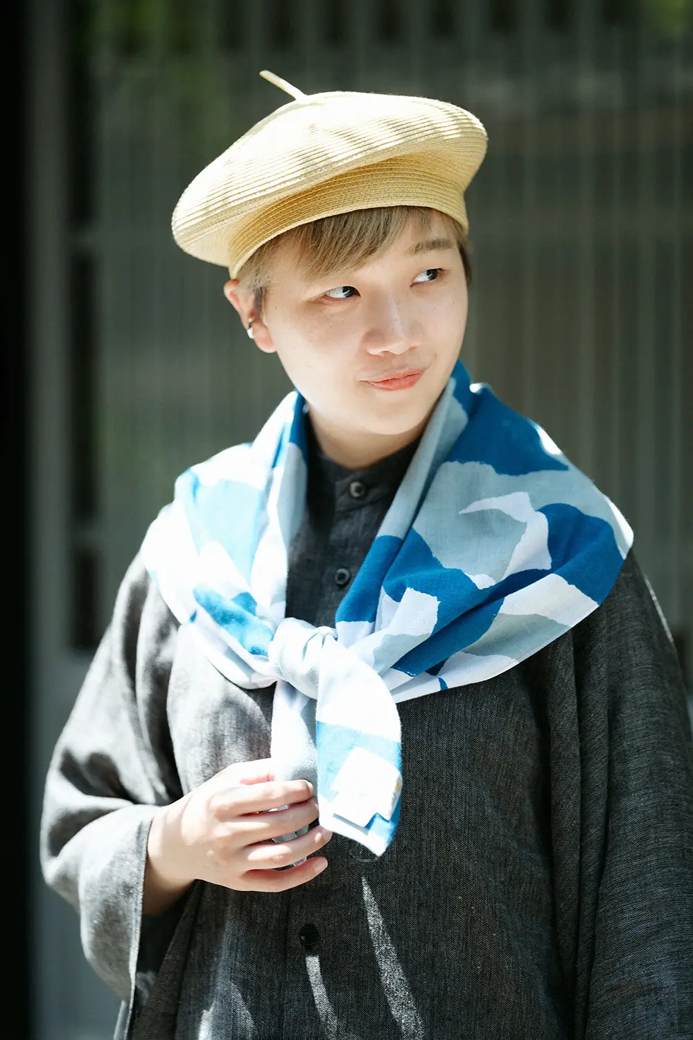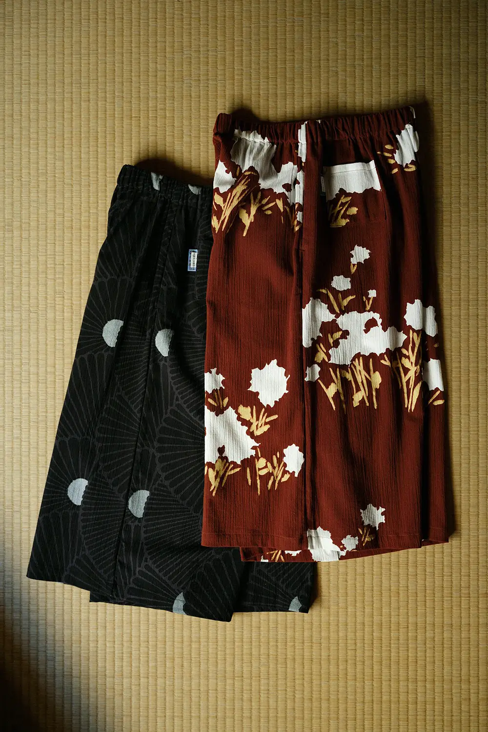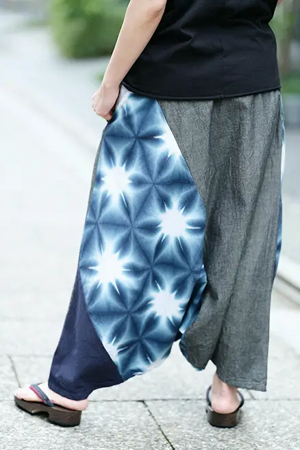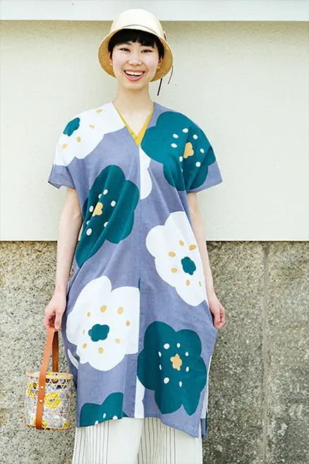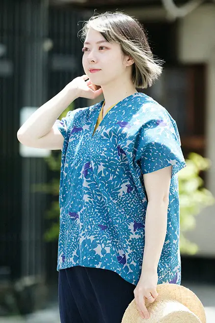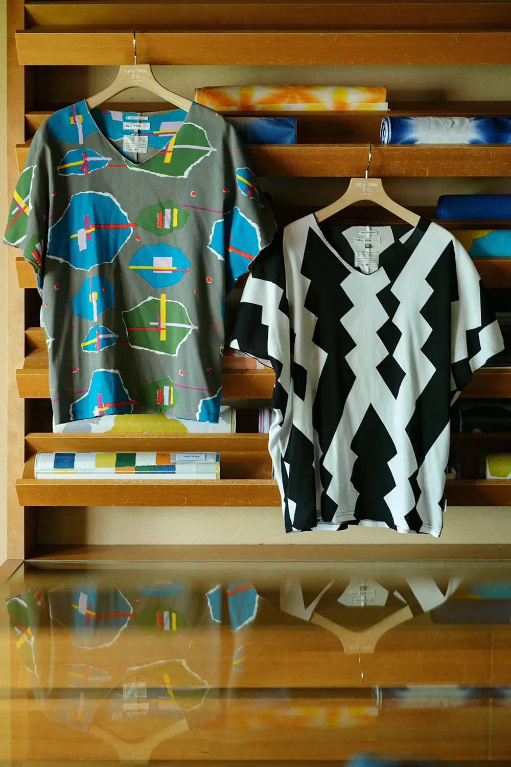 高島縮や知多木綿のトップスは、色とりどり。気持ちよく風を通し、夏の日差しに映えます。