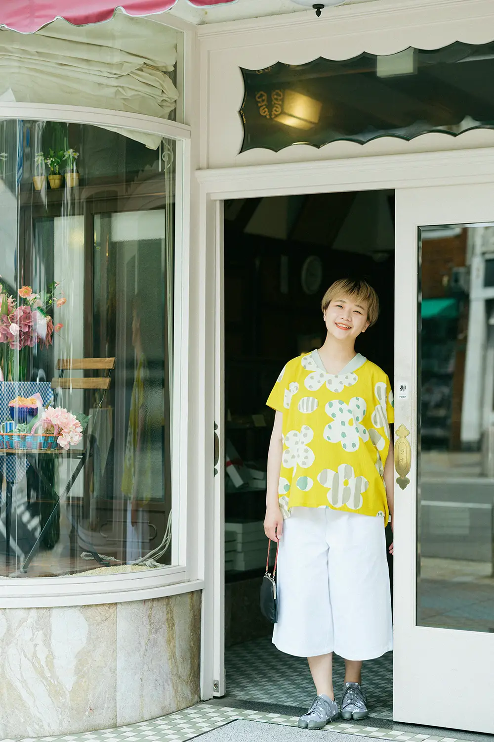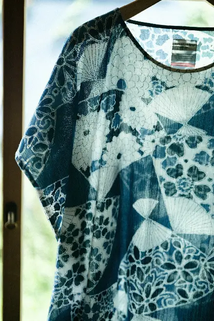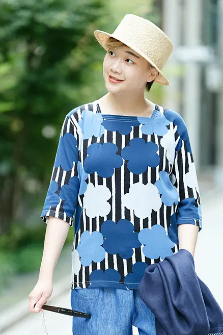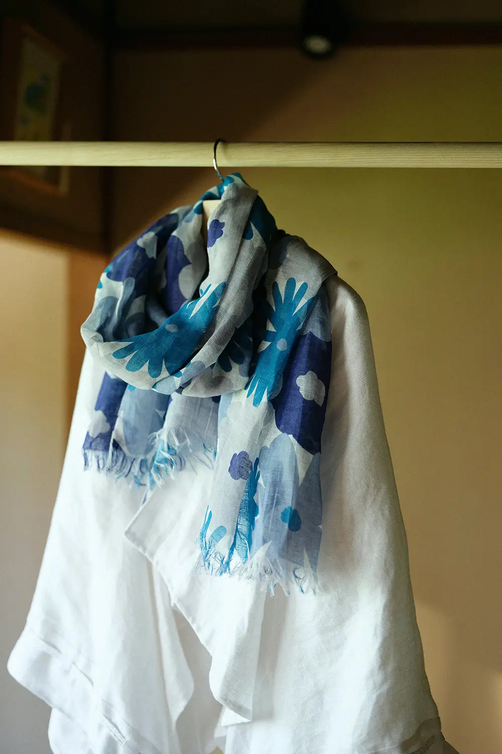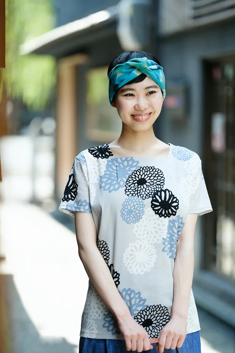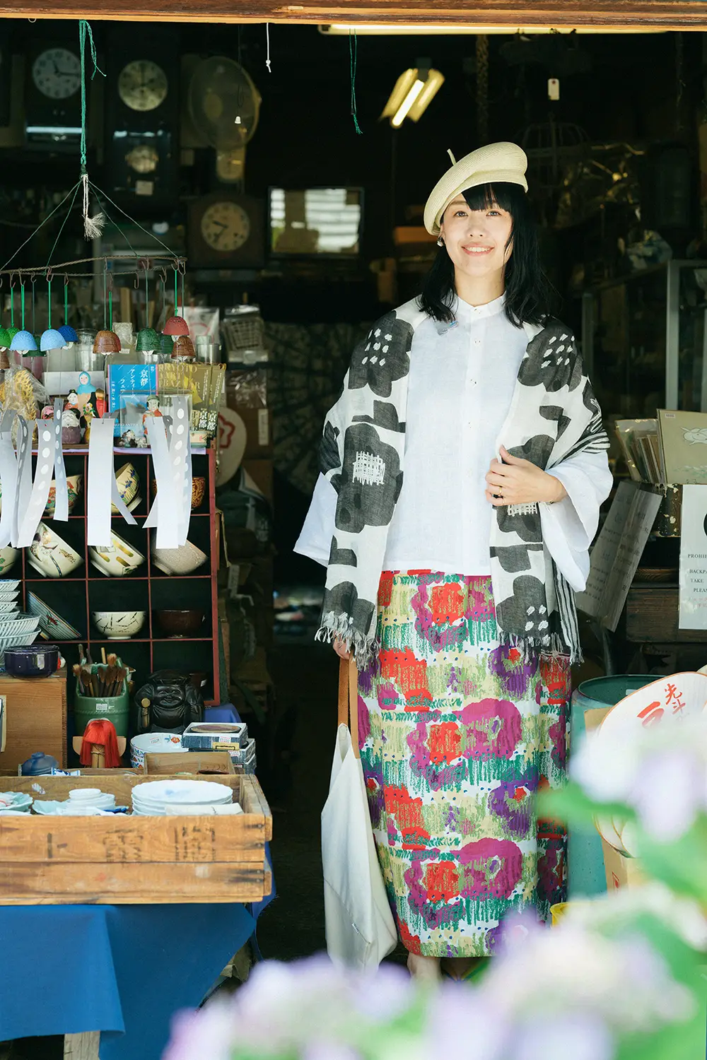 高島縮や知多木綿のトップスは、色とりどり。気持ちよく風を通し、夏の日差しに映えます。