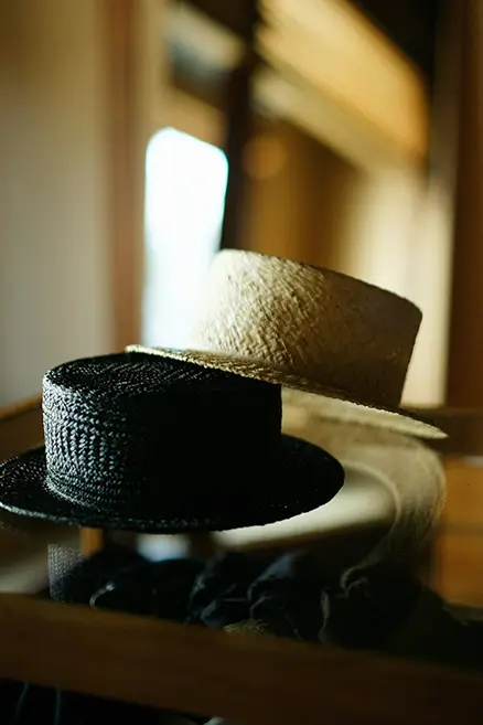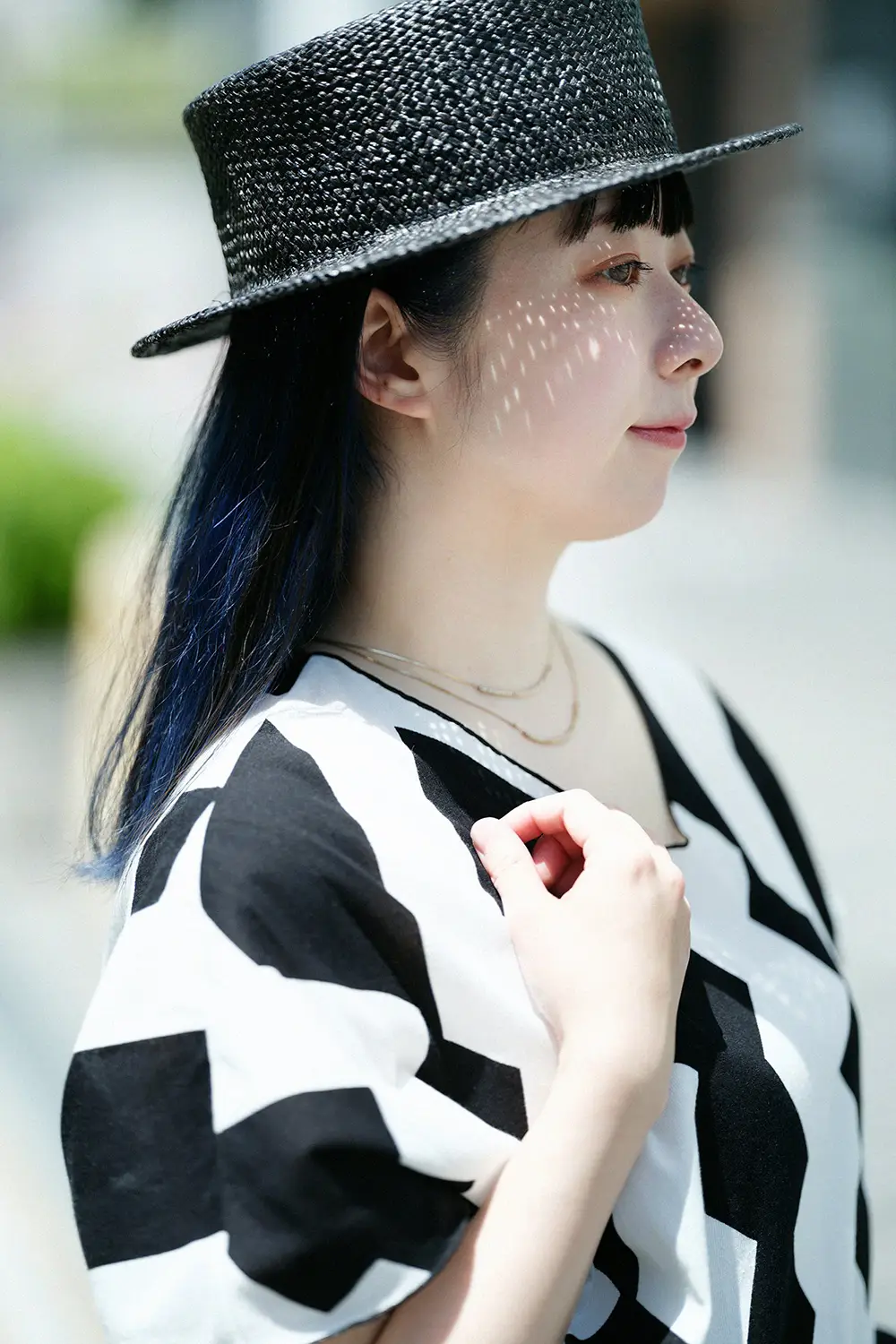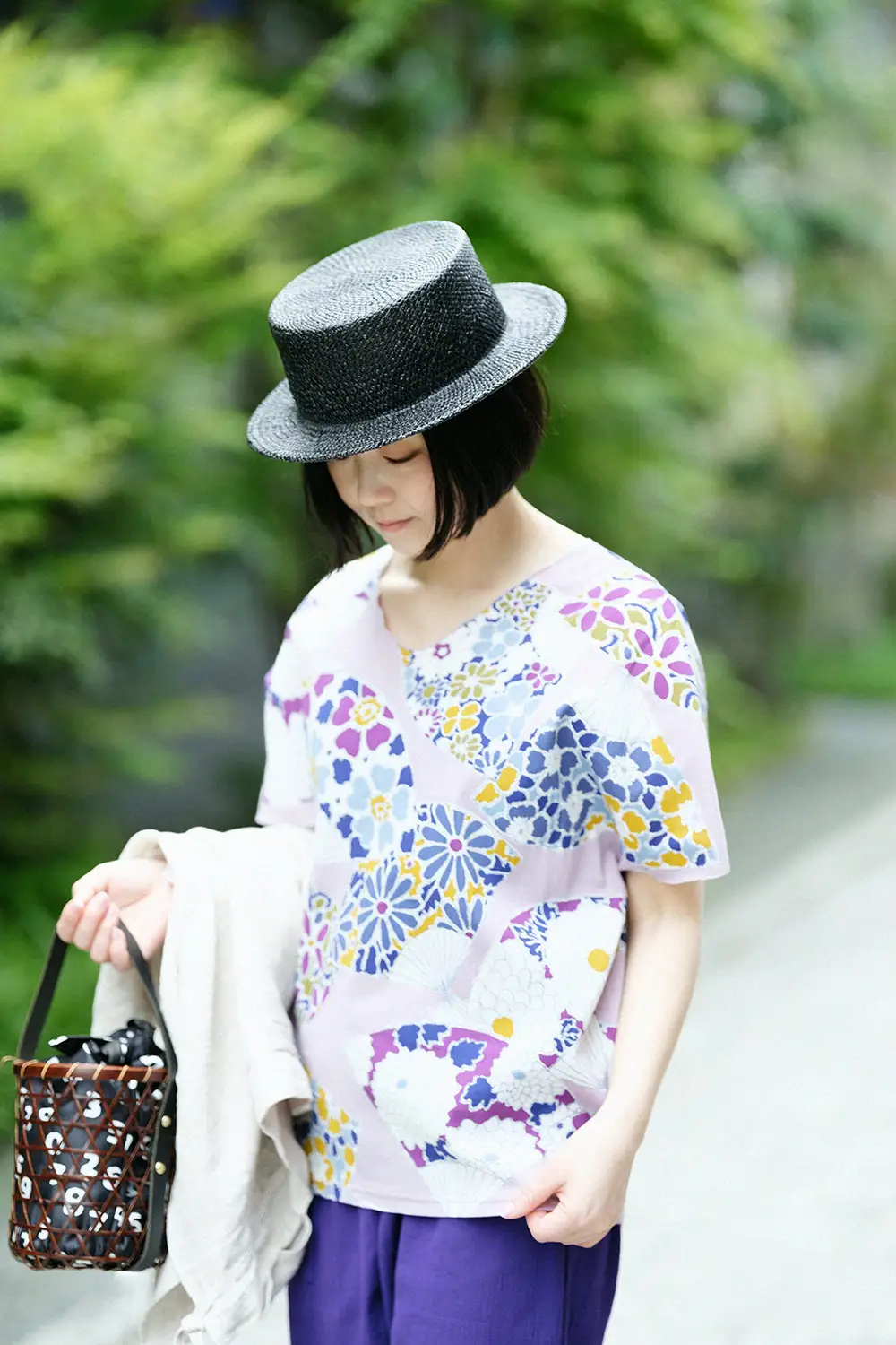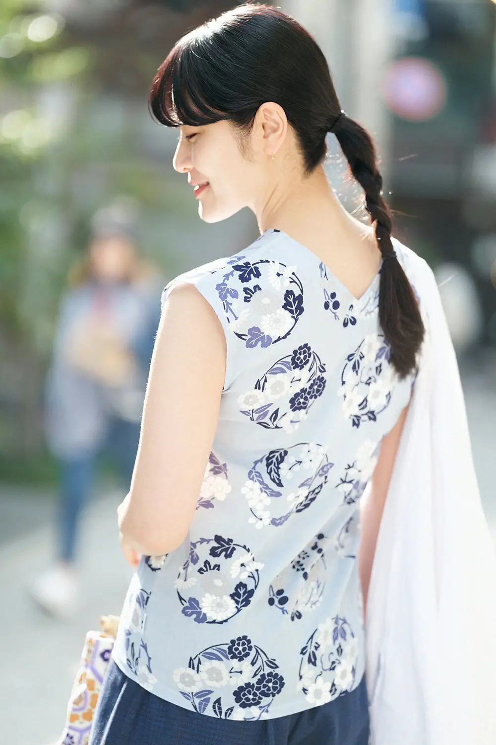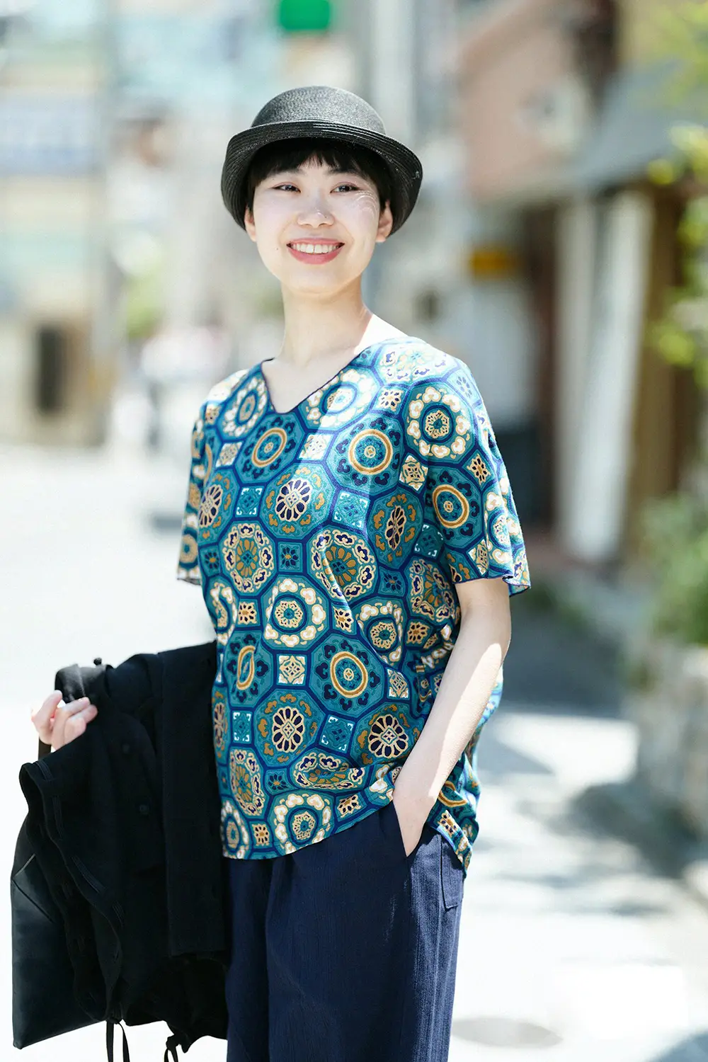 高島縮や知多木綿のトップスは、色とりどり。気持ちよく風を通し、夏の日差しに映えます。