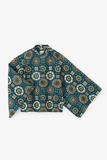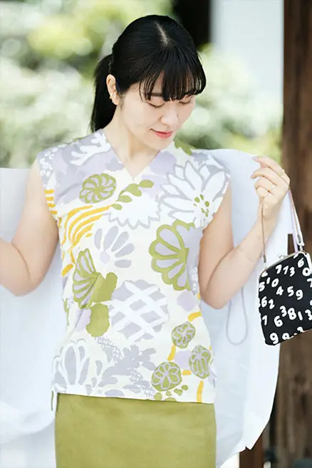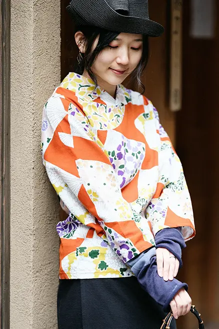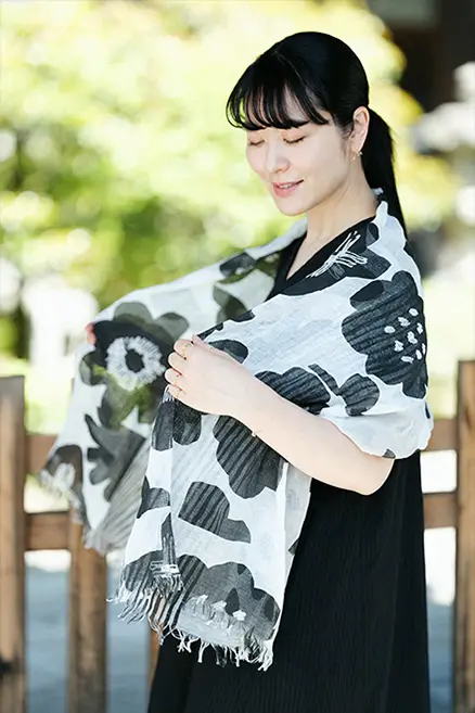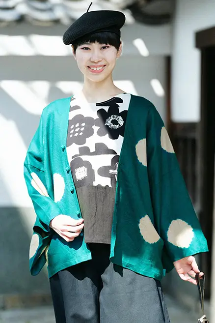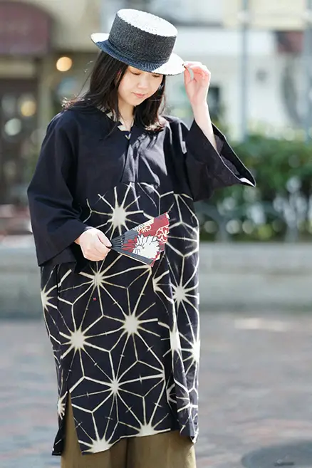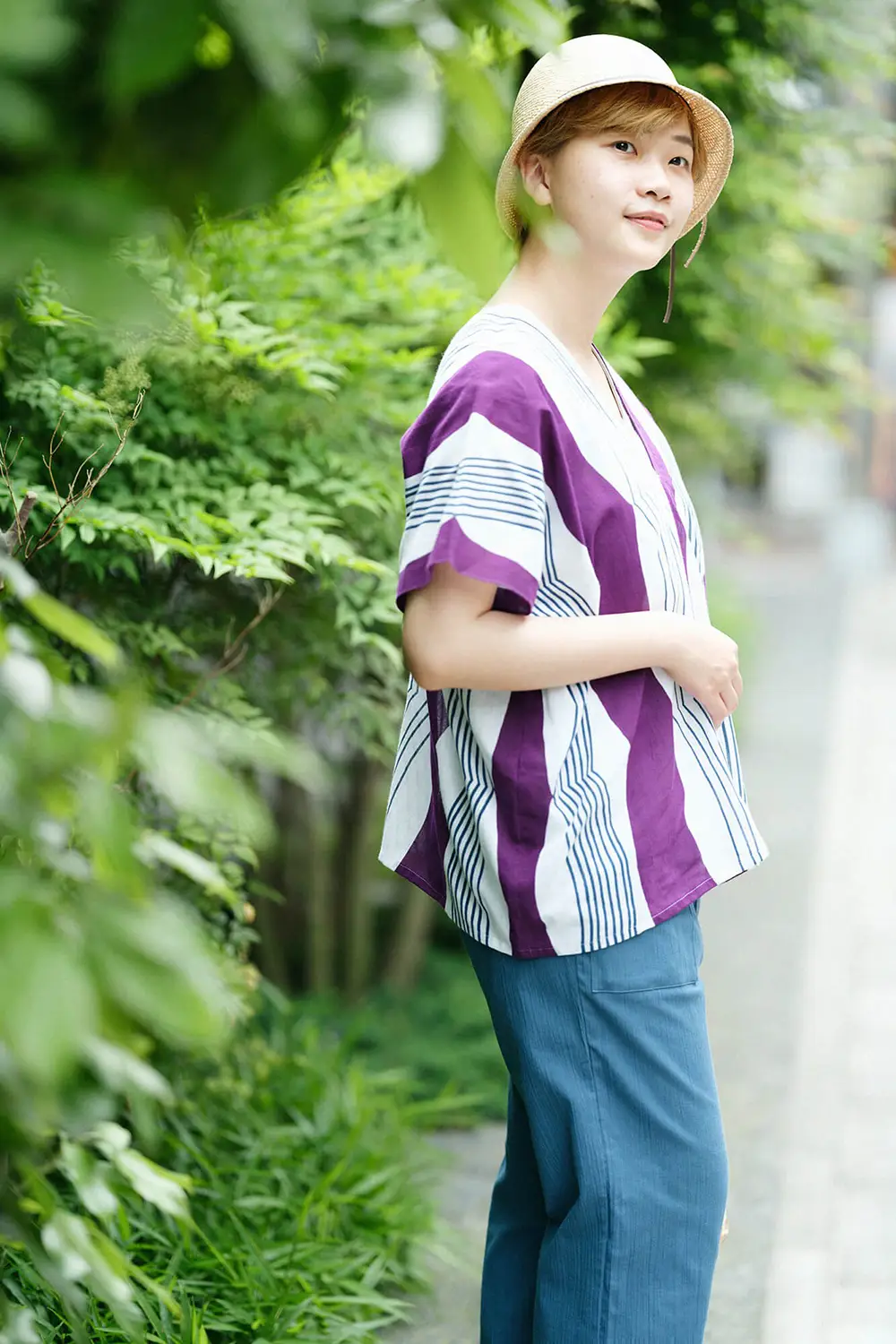 色柄あそびが楽しい羽織。夏の日差しもさらりと纏えば安心です。