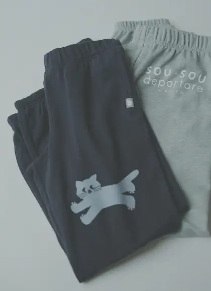 「deportare(デポルターレ)」とはラテン語で、「スポーツ」の語源。「気晴らしをする、休養する、楽しむ、遊ぶ」などを意味します。気まぐれに散歩したり、猫じゃらしめがけてダッシュしたり、日向ぼっこでウトウトまどろんだり。。そんな「猫みたいな運動」をコンセプトにしたスポーティなウェアが『SOU・SOU deportare』です。
