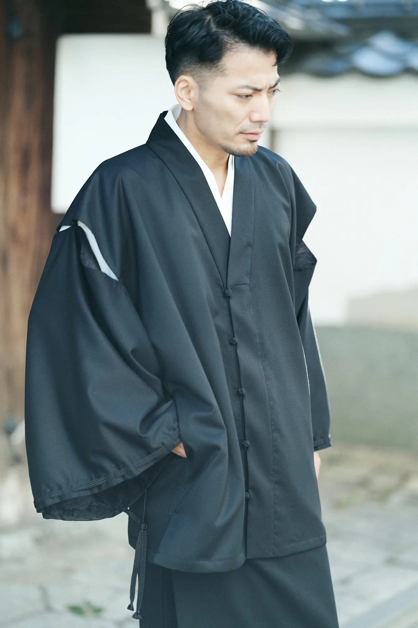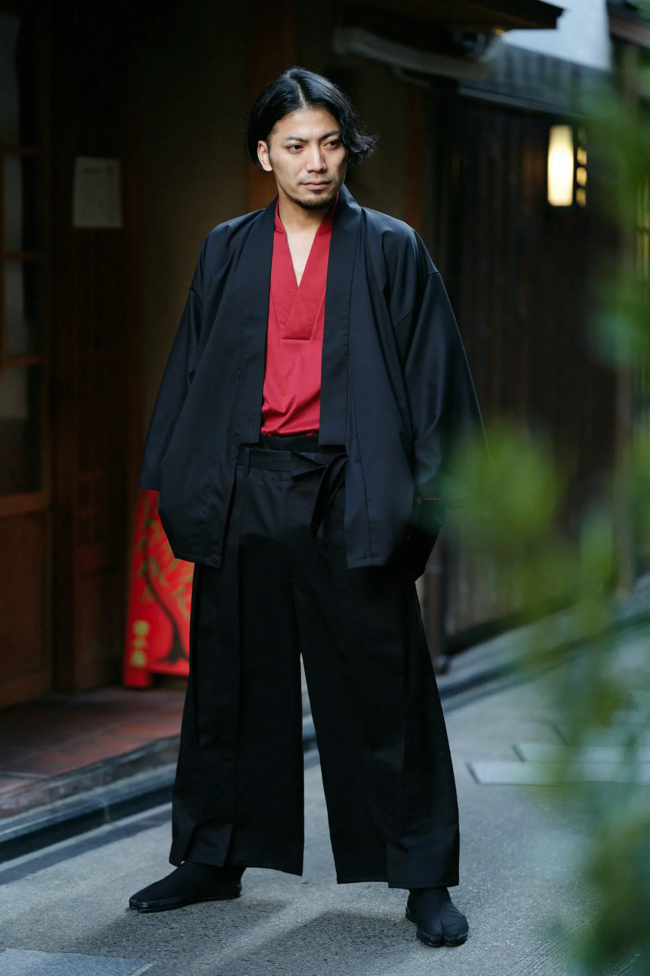 ディテールにもこだわり、円は“まるい”、領は“えり”という意味の「円領」。タックが入ることで動きやすく、格好良く仕上げた「袴形」。懐紙ポケットが付いた実用性のこだわりが詰まった「羽織」など。