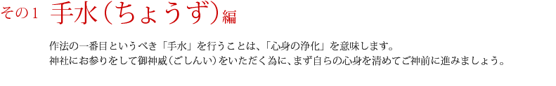 手水舎の柄杓(ひしゃく)を右手で取り、
