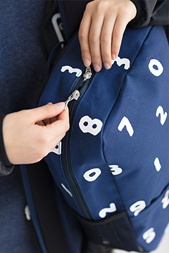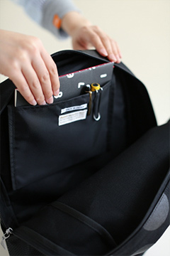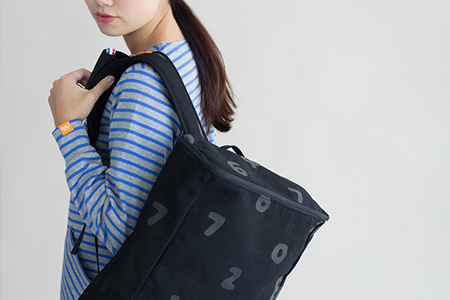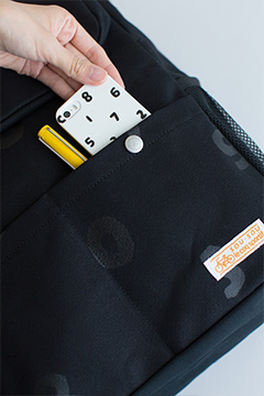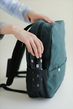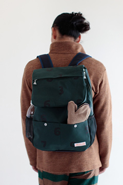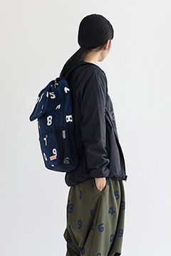 たくさんのポケットがついたバックパック。丈夫な8号帆布生地に京型友禅で染色。