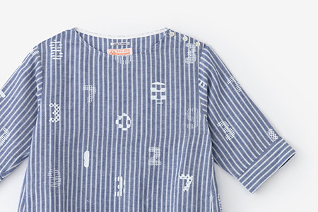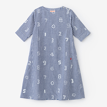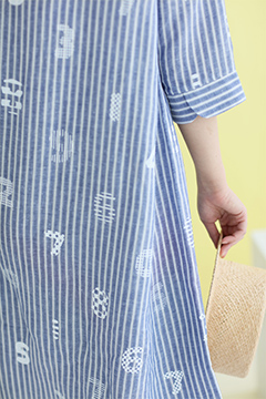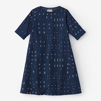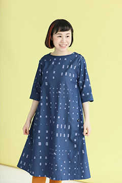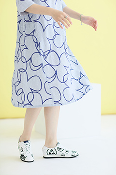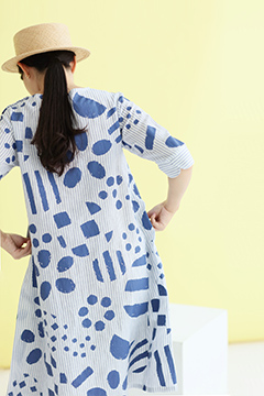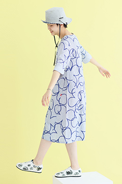 スカート裾部分の釦を留めることで、自転車に乗れる仕様になるワンピース。
