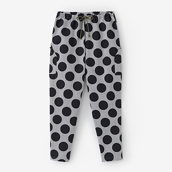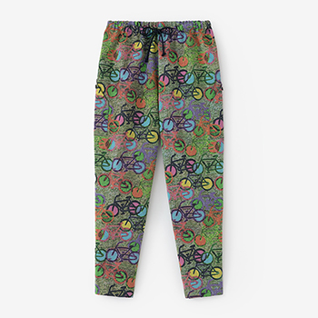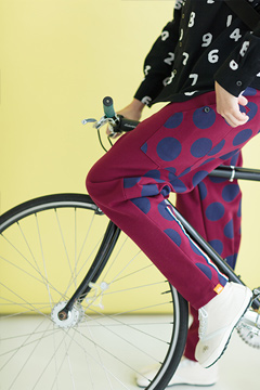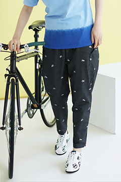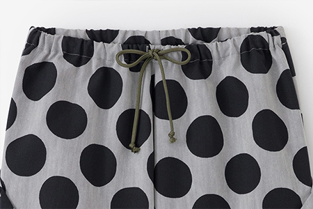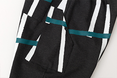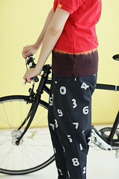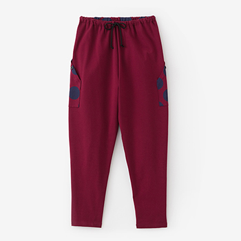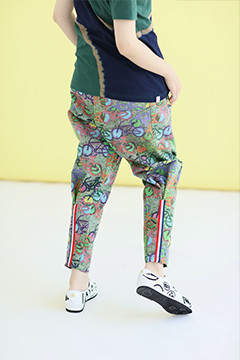 SOU・SOU流ジョッパーズパンツ。両裾のデザインテープが後ろ姿を引き立てる。