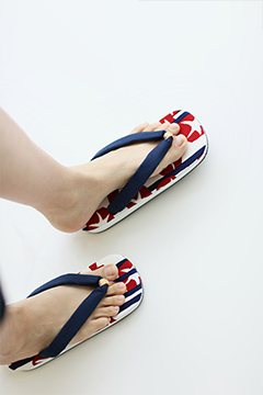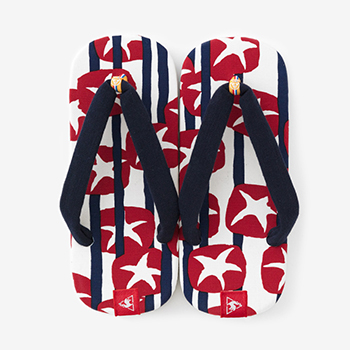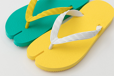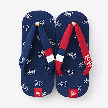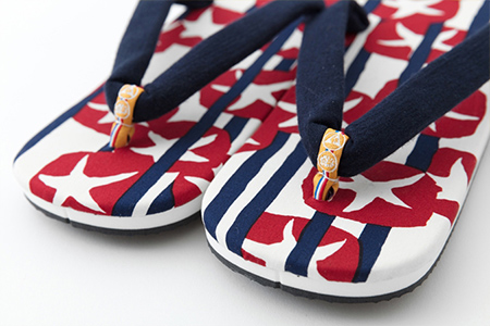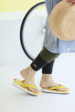SOU・SOUオリジナル・足袋型ビーチサンダルとオリジナルテキスタイルで作った草履。