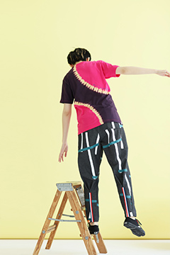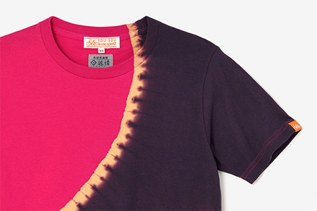 400年以上続く有松鳴海絞りの一つ、近清絞りによるボーシ絞りを施した半袖Tシャツ。