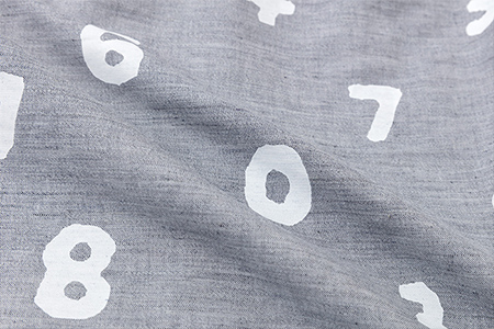 先染めの綿麻オックスフォード生地に京型友禅で染色