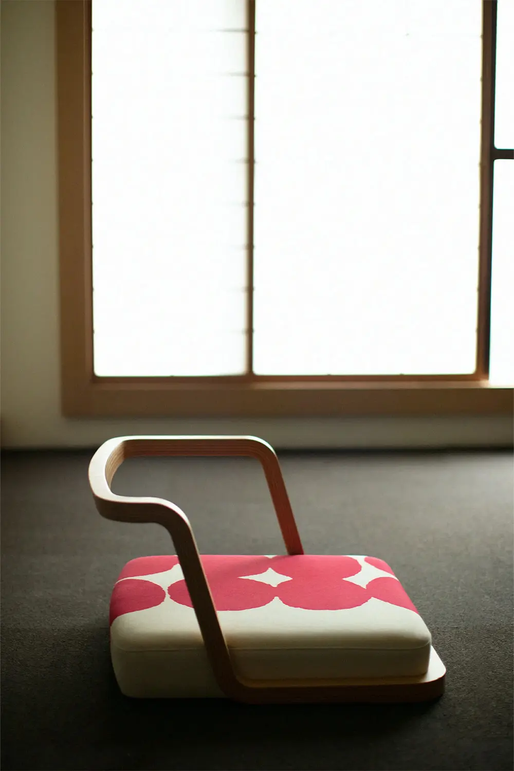 辻村久信デザイン。背中・肘掛けを一体にした高度な技術から生まれた座椅子。※海外発送:不可
