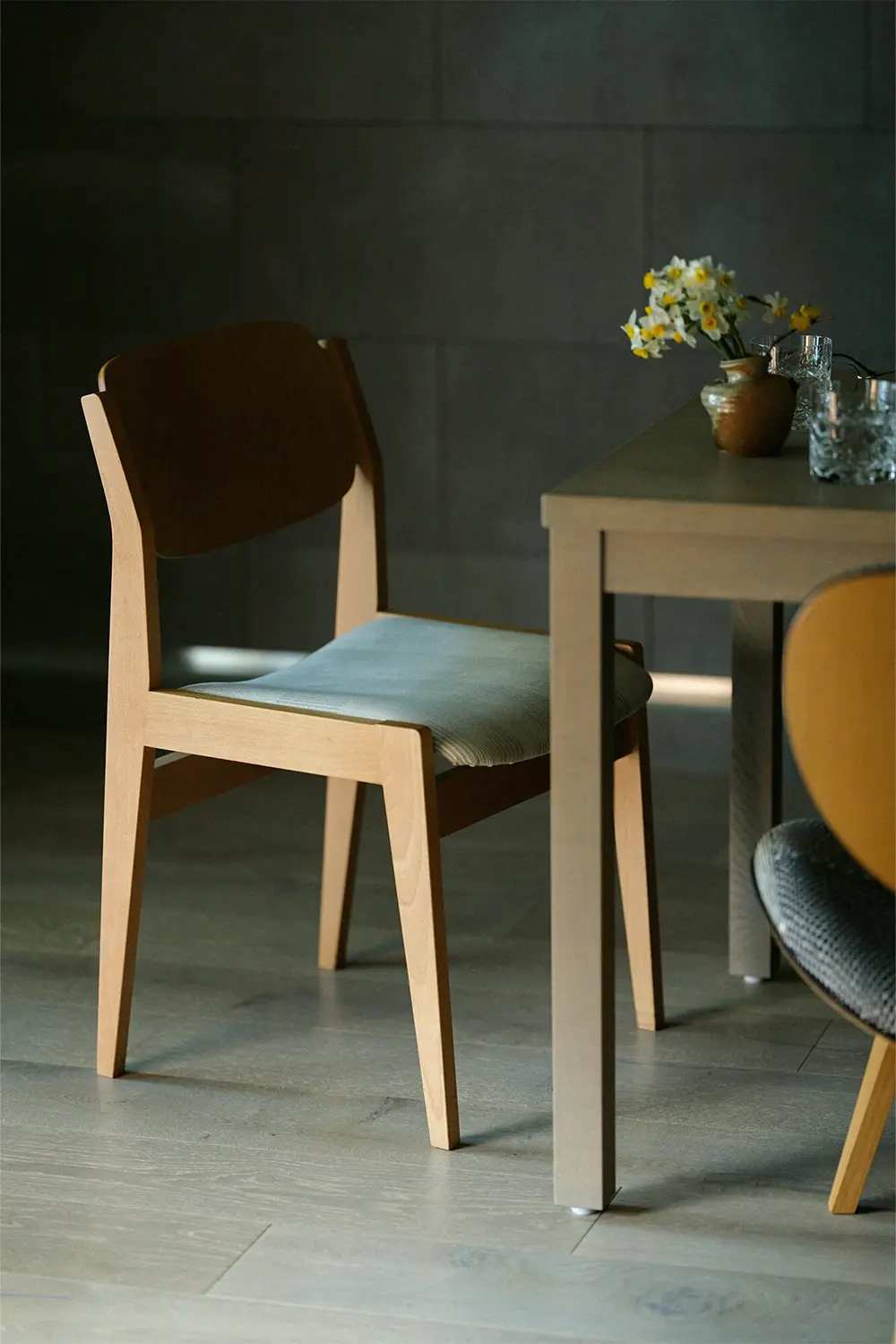ブナ材の柔らかい風合いを生かした、シンプルで優しいデザインのチェア。重さ3.7kgと軽量で、使い勝手がよいのが特徴です。※海外発送:不可