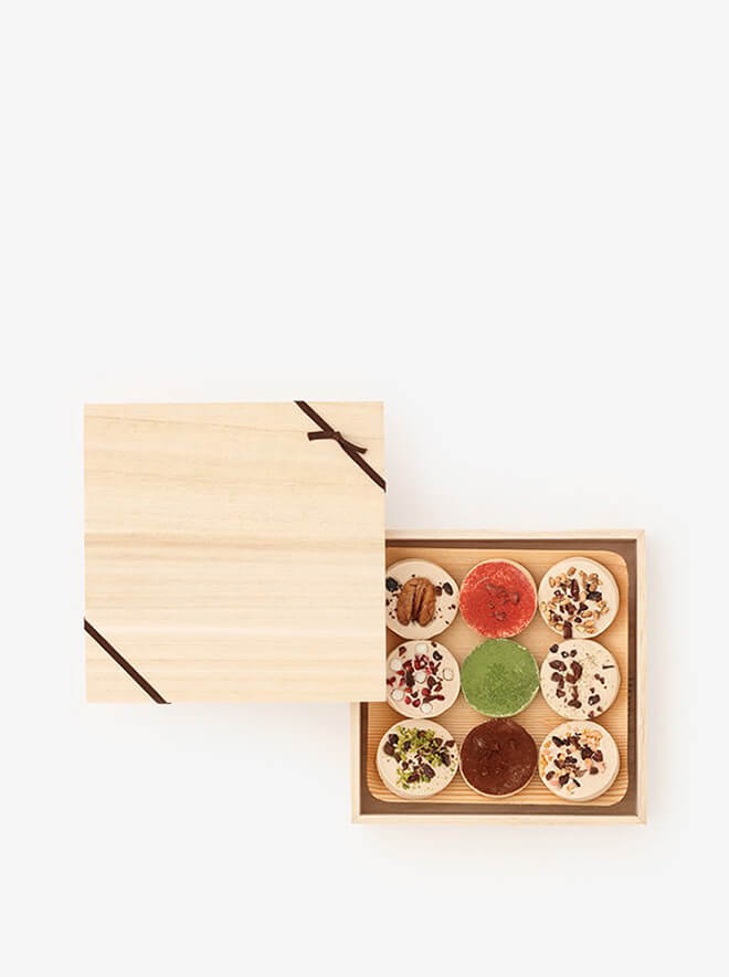 享和三年創業、二百年以上の歴史をもつ京菓子司『亀屋良長』とのコラボレーション。良質の素材と伝統を活かした、洗練された味とデザインをあの人に。