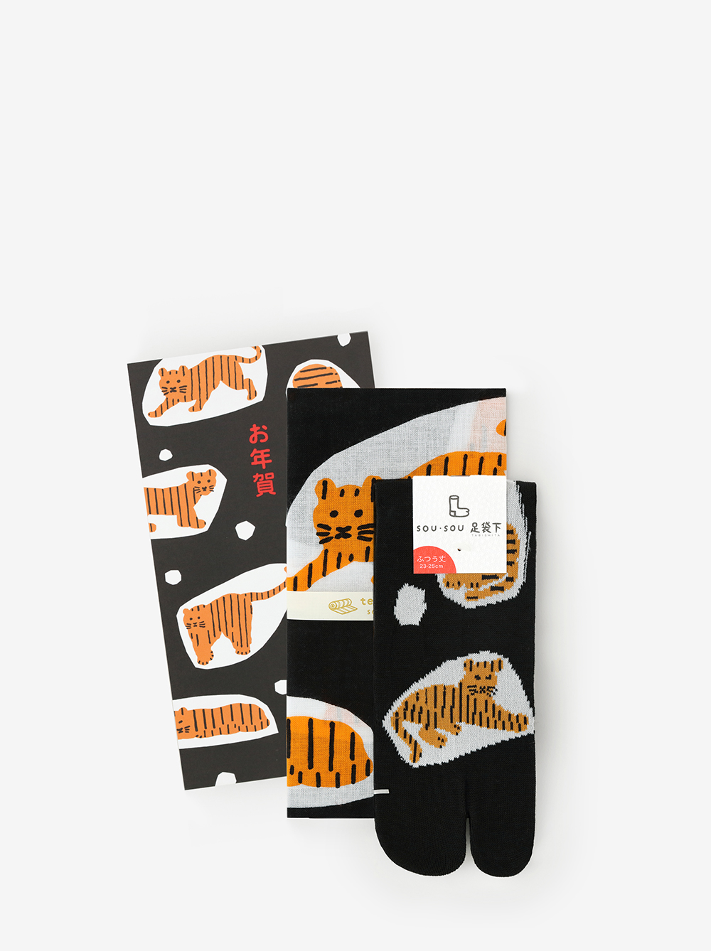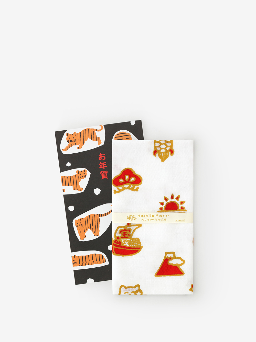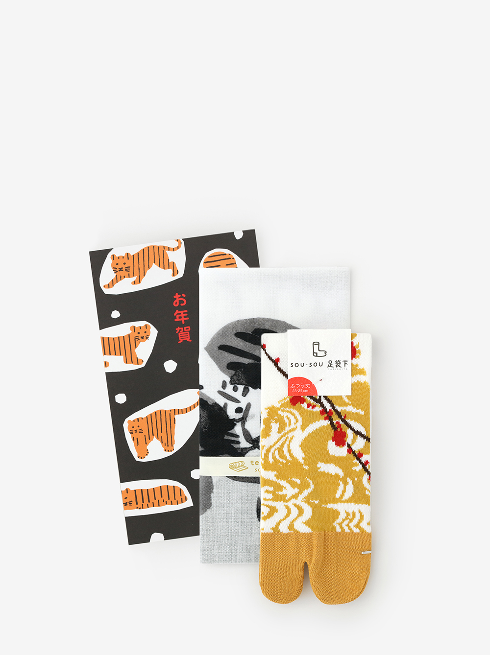 令和四年の干支“寅”をあしらった「手ぬぐい」と「足袋下」、ポップなパッケージに包まれたお菓子やお茶、日々の生活を彩るテーブルウェアなど。今年一年の「ありがとう」と「今年もよろしく」の気持ちを込めて。SOU・SOUの心温まるギフトを贈りませんか。