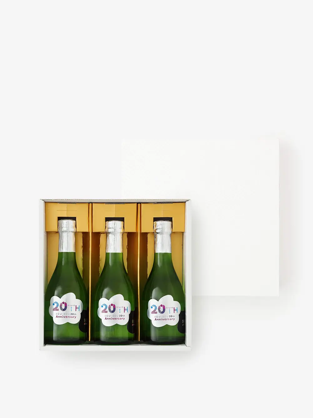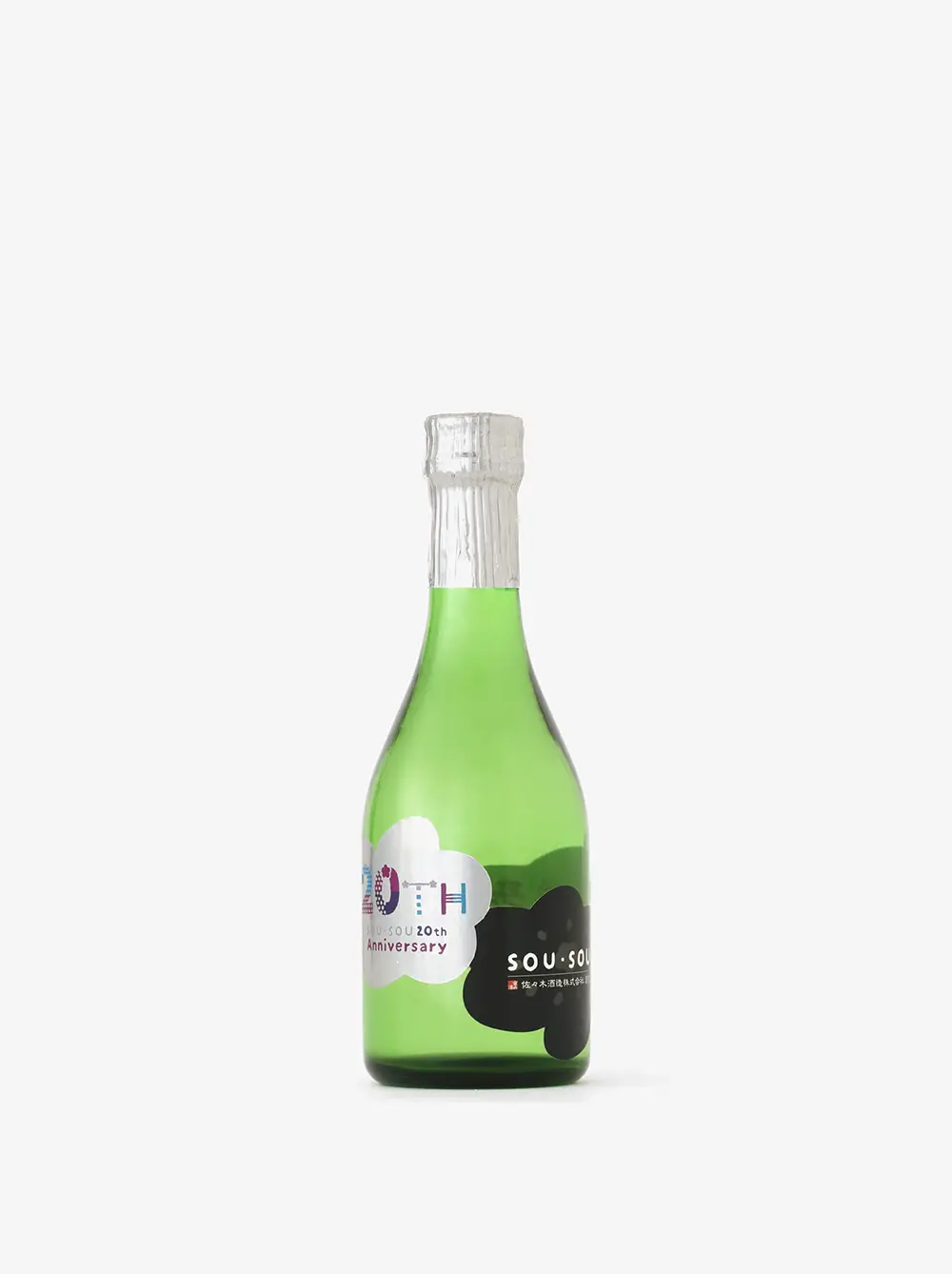 京都の中心街で四代続く伝統の酒蔵『佐々木酒造株式会社』の日本酒「聚楽第」。SOU・SOU20周年記念限定ラベルとしてほほえみ柄をあしらいました。