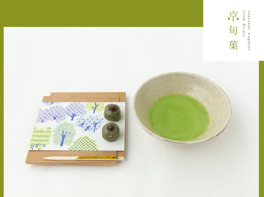 皐月の京旬菓は、よもぎ味。よもぎの若芽には特有の爽やかな香りがあり、春先の和菓子の素材として多く用いられます。